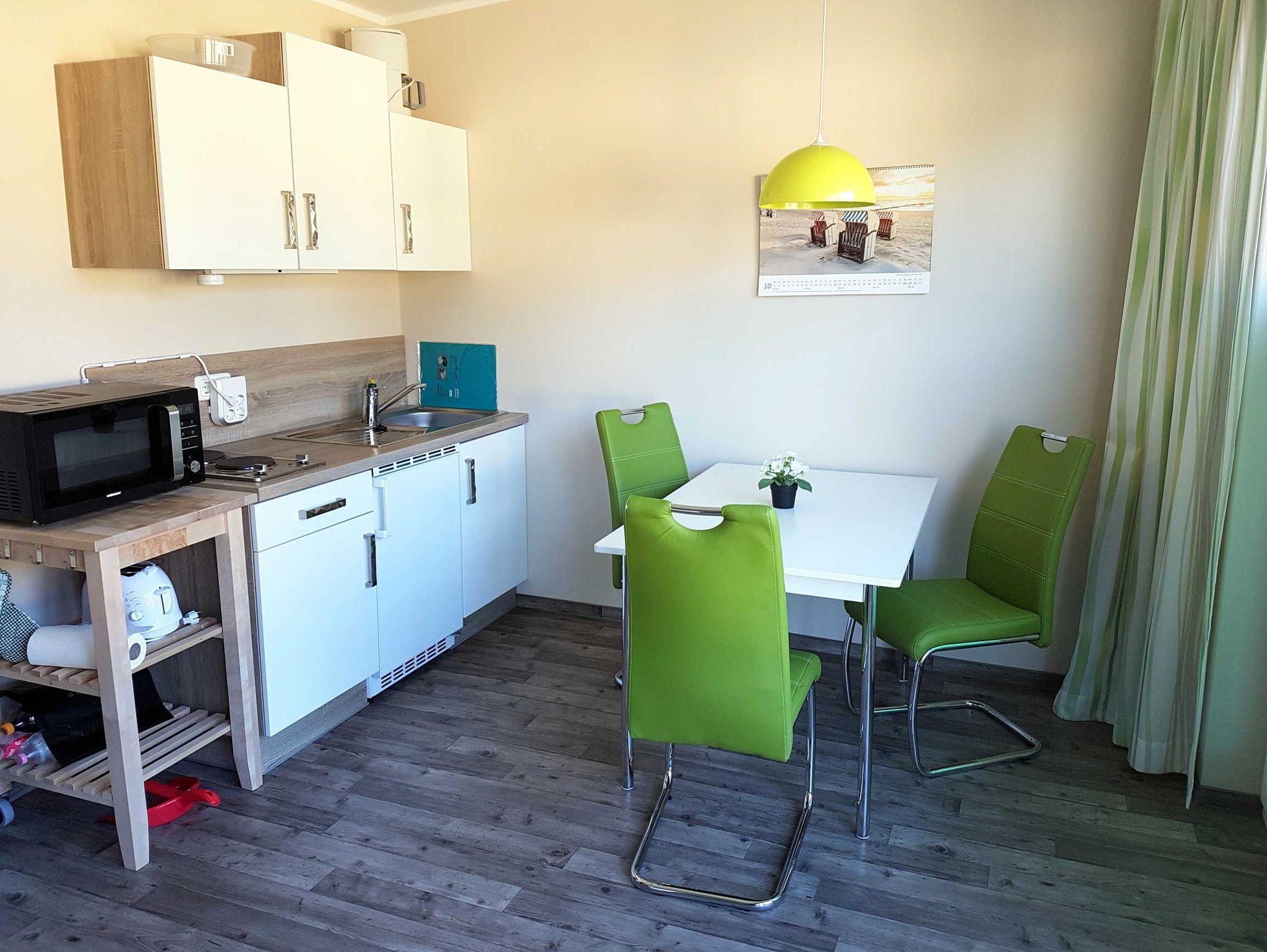 Die Küche ist u.a. mit Kaffeemaschine, Mikrowelle und Ceran-Kochplatten ausgestattet. Im Wohnzimmer gibt es einen Flachbild-TV. In der gesamten Wohnung steht Ihnen Internet per Wlan zur freien Verfügung.