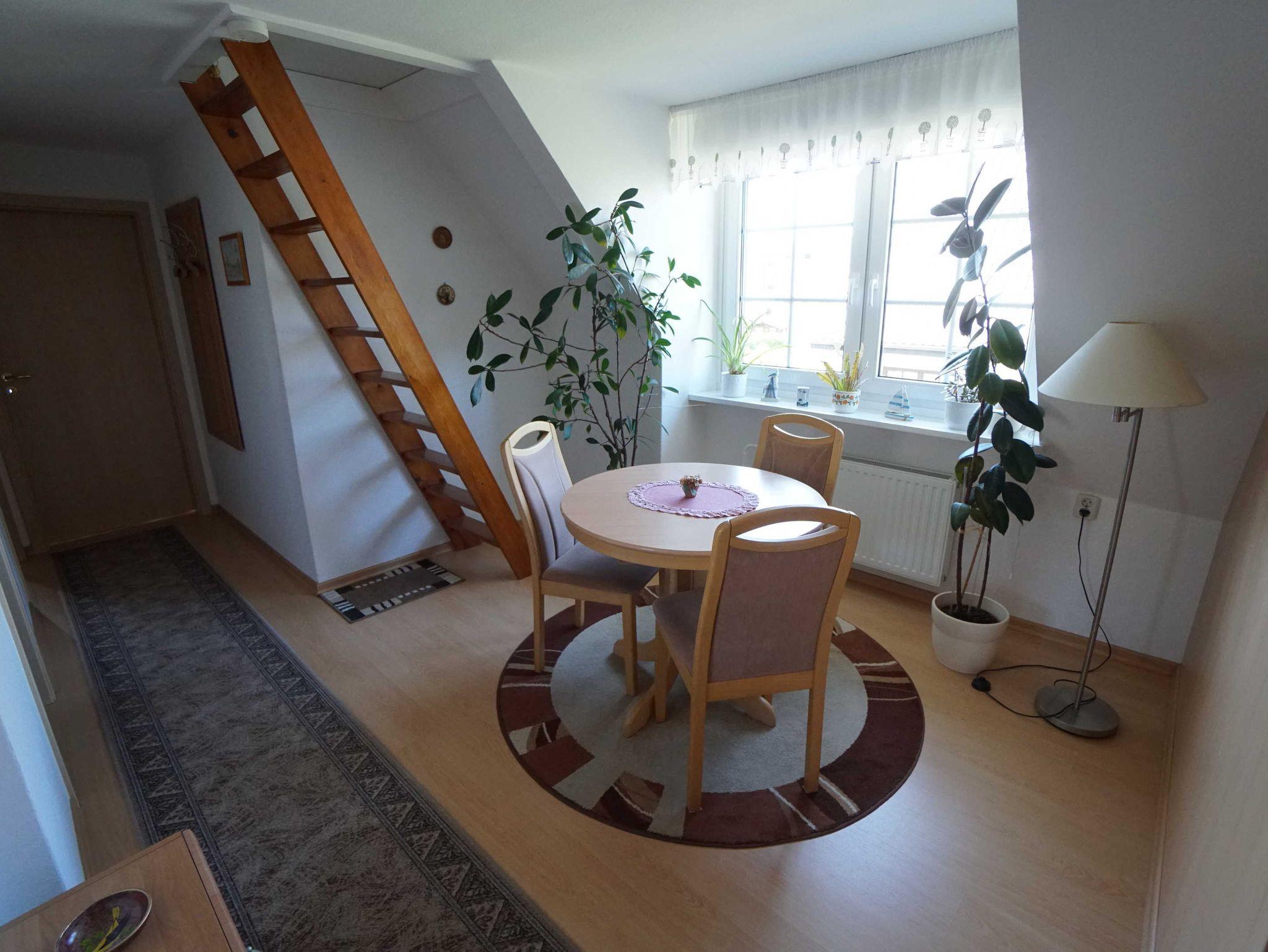 Von der Diele aus gelangt man in alle Zimmer der Ferienwohnung und hier gibt es auch einen gemütlichen Eßtisch. In der Diele ist ebenfalls Laminat ausgelegt.