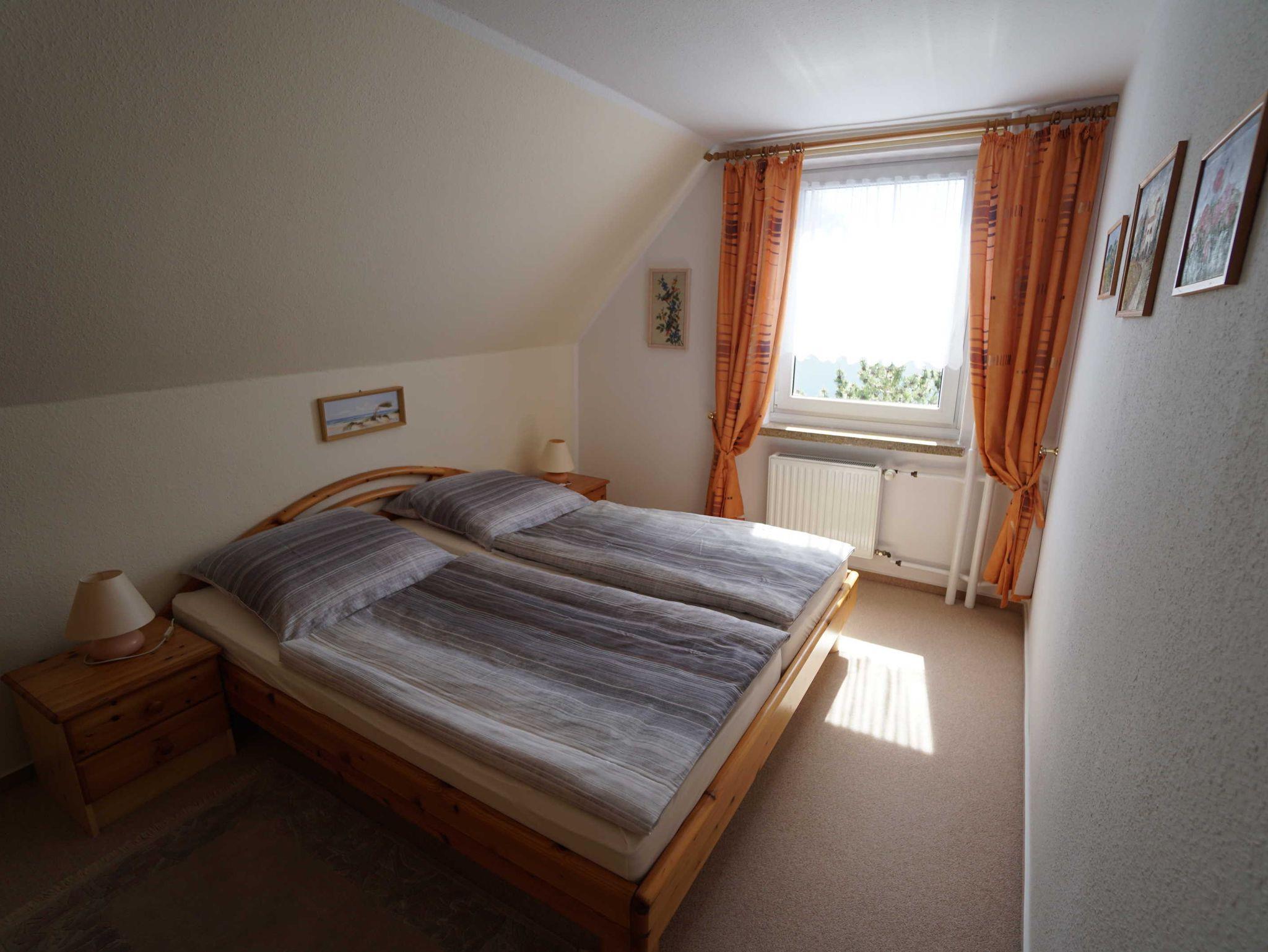 Die Ferienwohnung verfügt über 2 Schlafzimmer. Im größeren von beiden steht ein komfortables Doppelbett und ist mit Teppich ausgelegt.