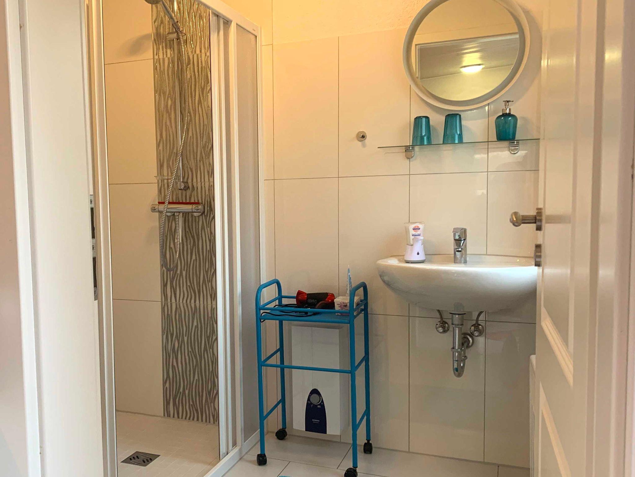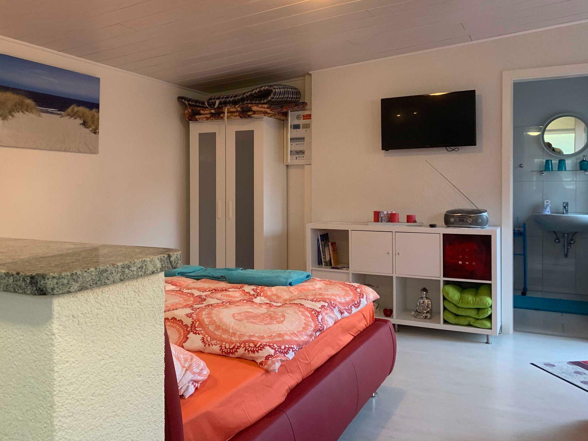Der Bungalow besteht aus einem kombinierten Wohn-, Ess- und Schlafbereich und einem separaten Badezimmer mit Dusche und WC. Vor dem Bungalow können Sie die große Terrasse und den Garten nutzen.