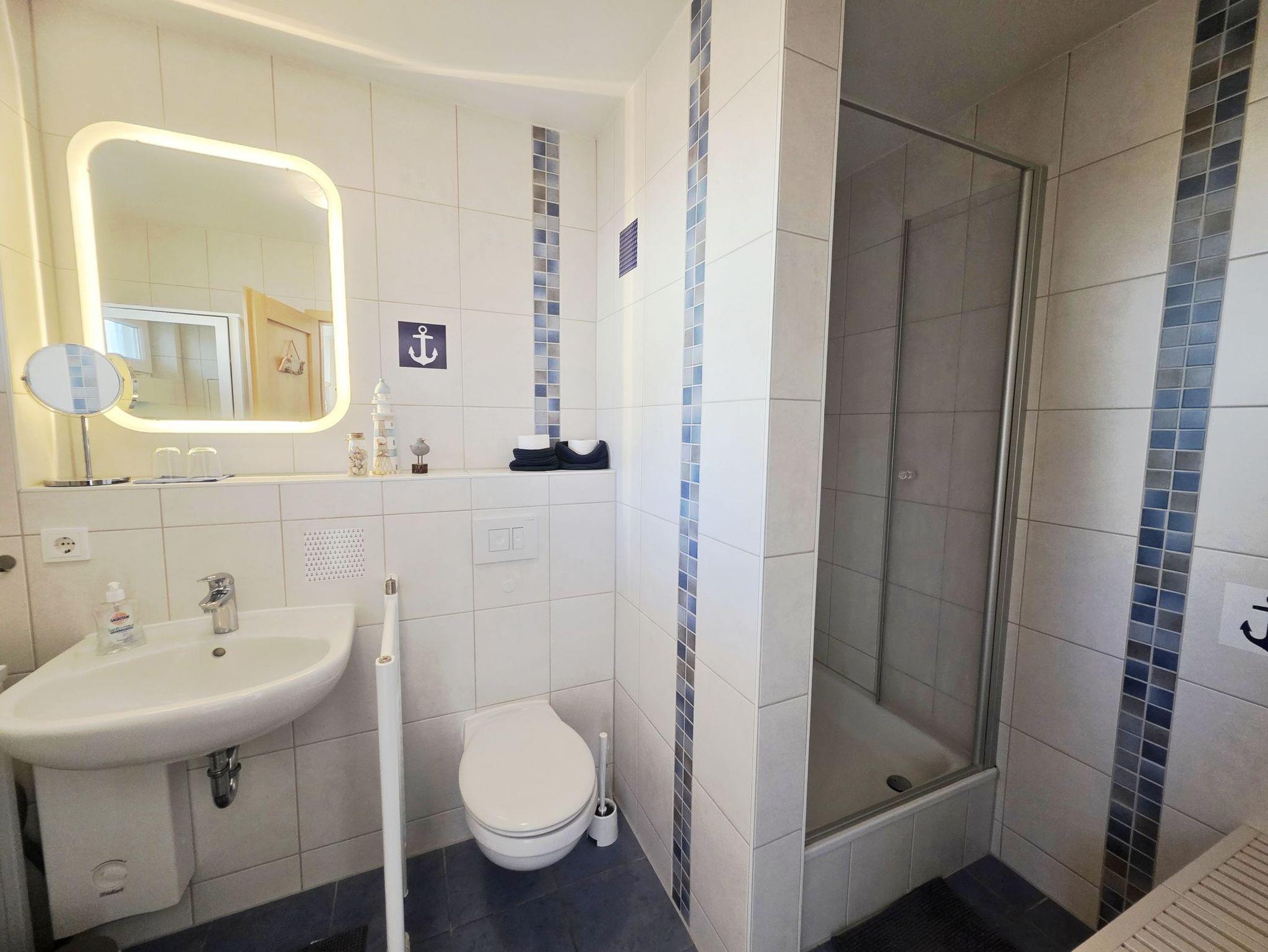 52 m² große 2-Zimmer-Ferienwohnung im Erdgeschoss in Strandnähe im Ortsteil Müritz. Das Wohnzimmer hat eine offene Küche und Zugang zur Terrasse, im Schlafzimmer gibt es ein Doppelbett (1,60 x 2,00 m), das Bad ist mit Dusche und WC ausgestattet. Ein PKW-Parkplatz befindet sich vor dem Haus, zusätzlich gibt es einen Fahrradschuppen.