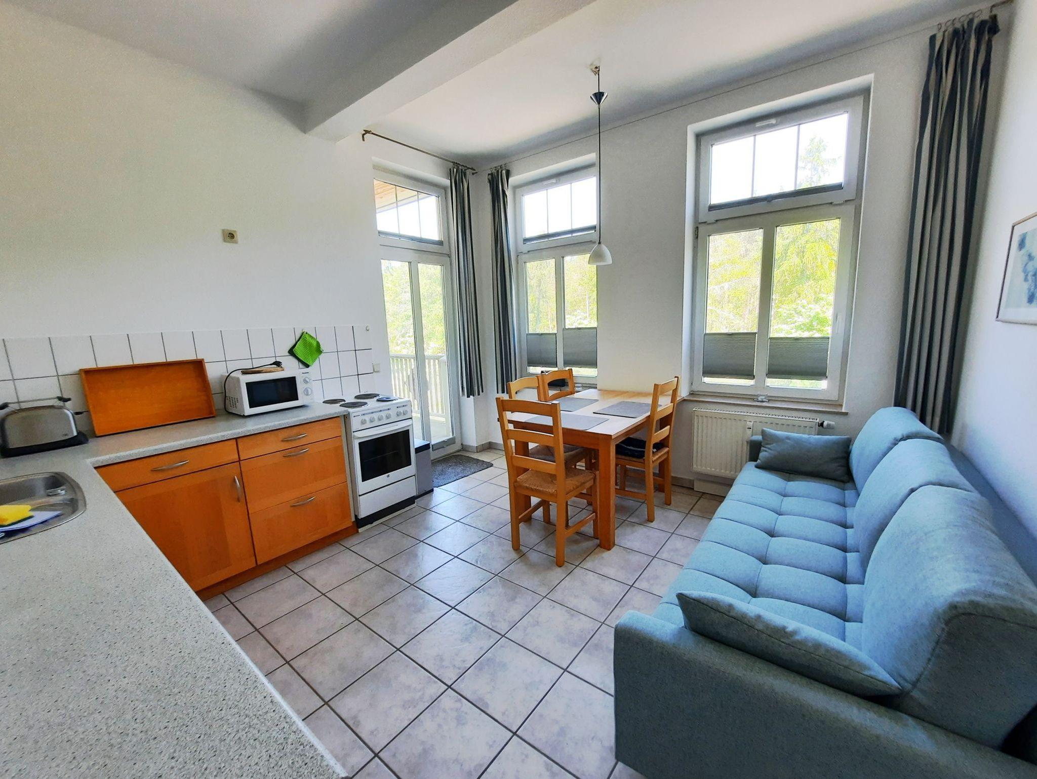 Gemütliche Ferienwohnung im historischen Haus Reinhild mit Balkon und Blick auf den Küstenwald in Graal-Müritz.