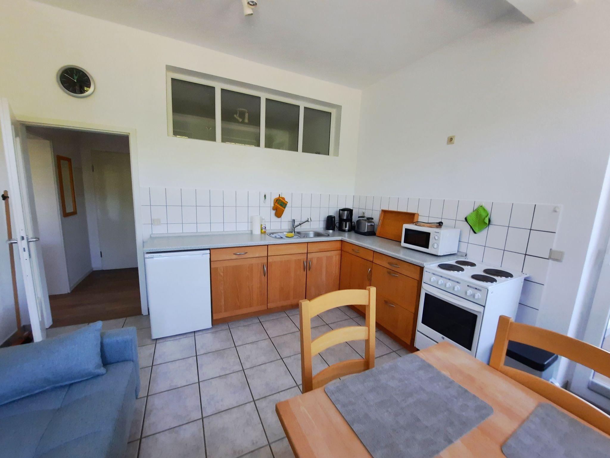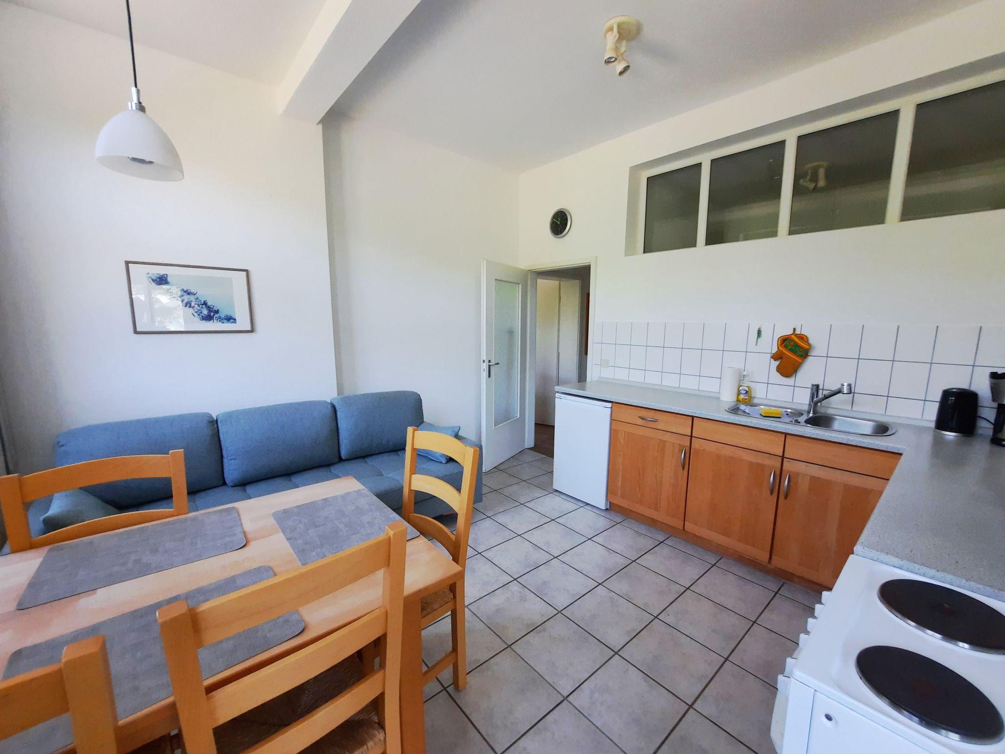 Die etwa 48 qm große, großzügig geschnittene Ferienwohnung empfängt Sie mit einem kombinierten Wohn- und Schlafbereich mit Sofa-Ecke, zwei Einzelbetten und einem Flachbild-Fernseher. In der gut ausgestatteten Küche steht ebenfalls ein Sofa und ein Ess-Platz mit 4 Stühlen. Von der Küche gelangen Sie auch auf den schönen Balkon mit Blick auf den Küstenwald. Im Bad befinden sich eine Badewanne, das WC und ein Waschbecken. Das Haus ist von einer Grünfläche und einem kleinen Garten umgeben, welchen Sie mitbenutzen dürfen. Im Schuppen finden Sie die Balkonmöbel. Ihr Auto können Sie auf dem dazu gehörenden Stellplatz sicher parken.