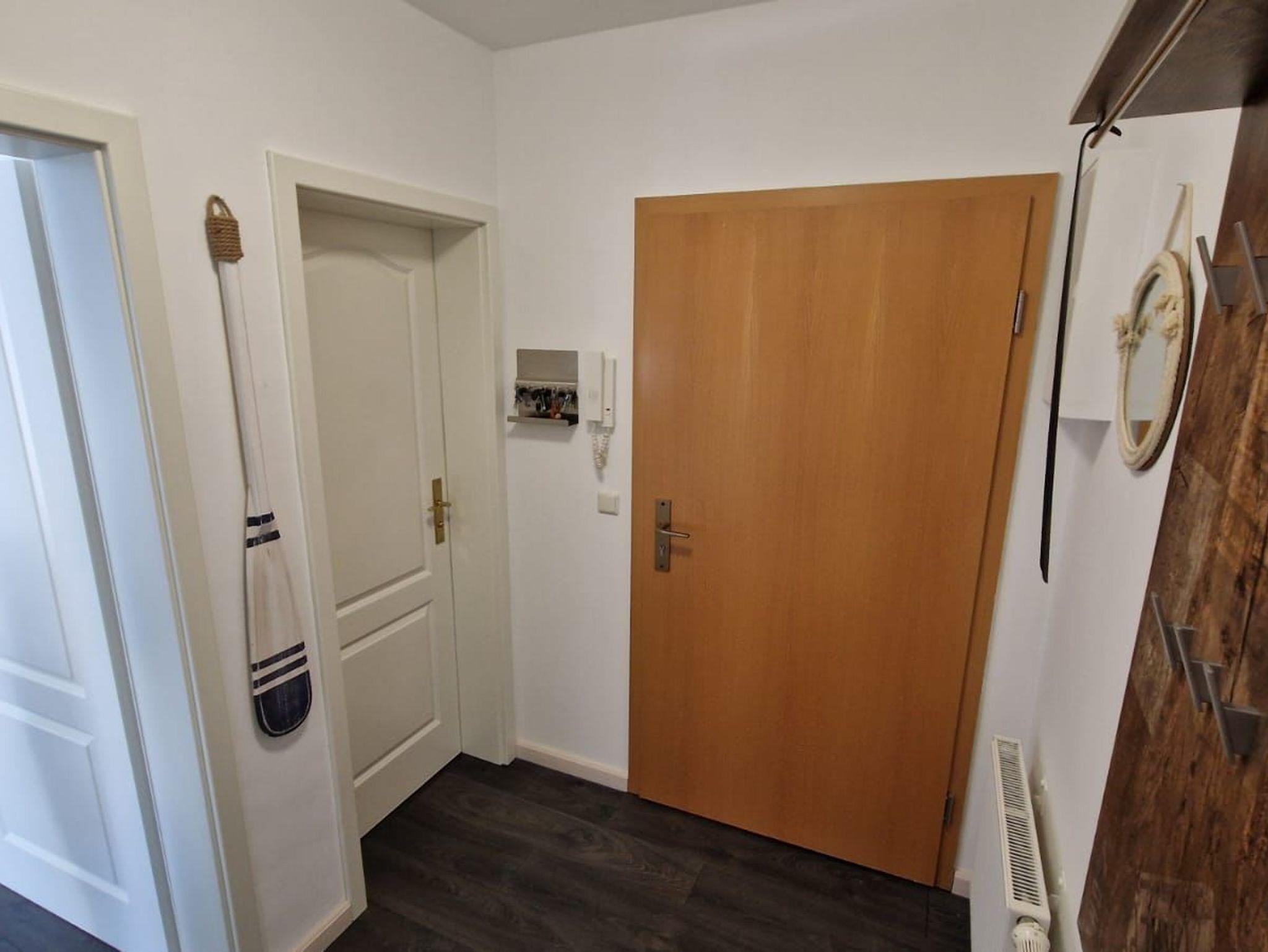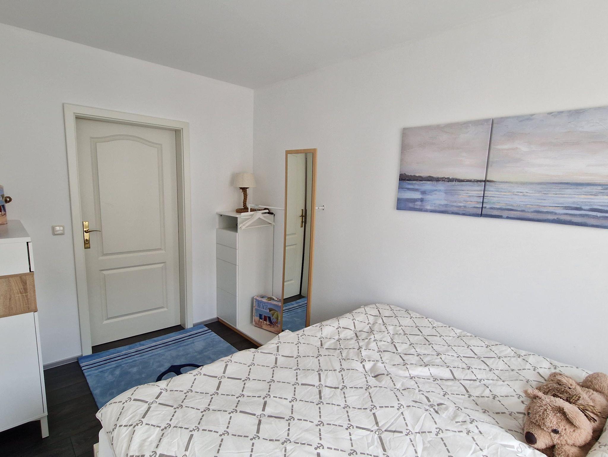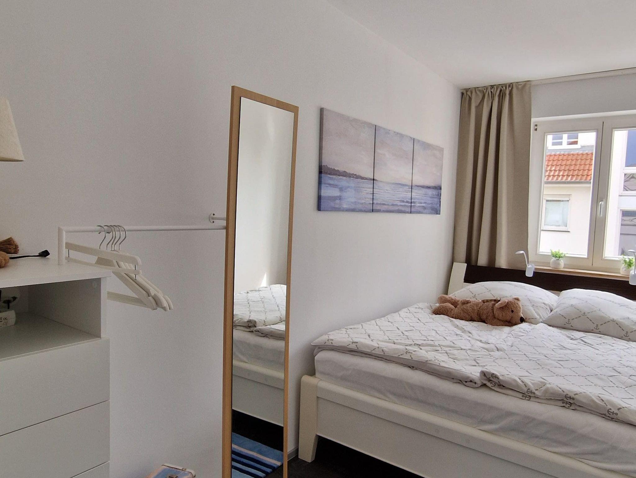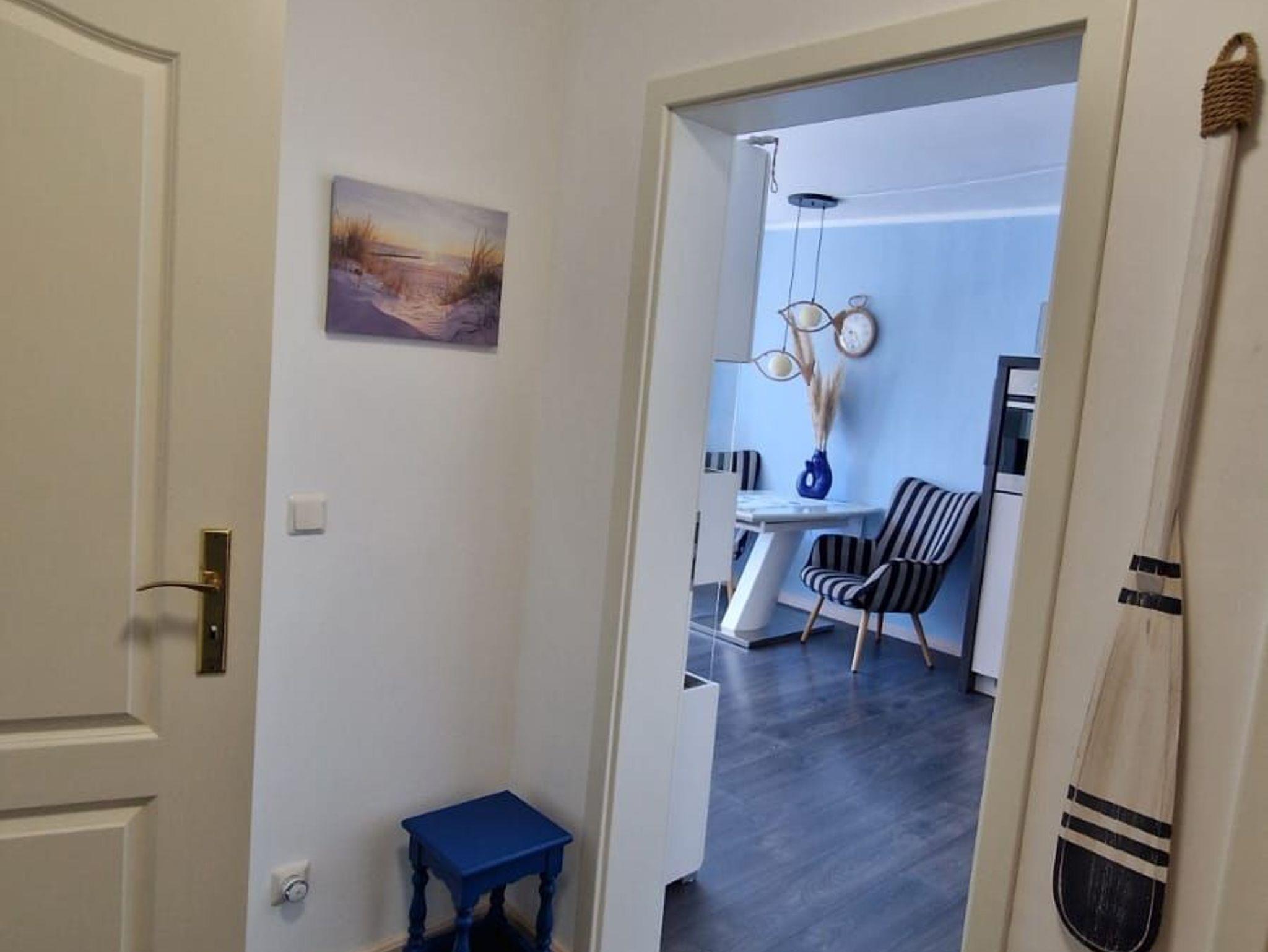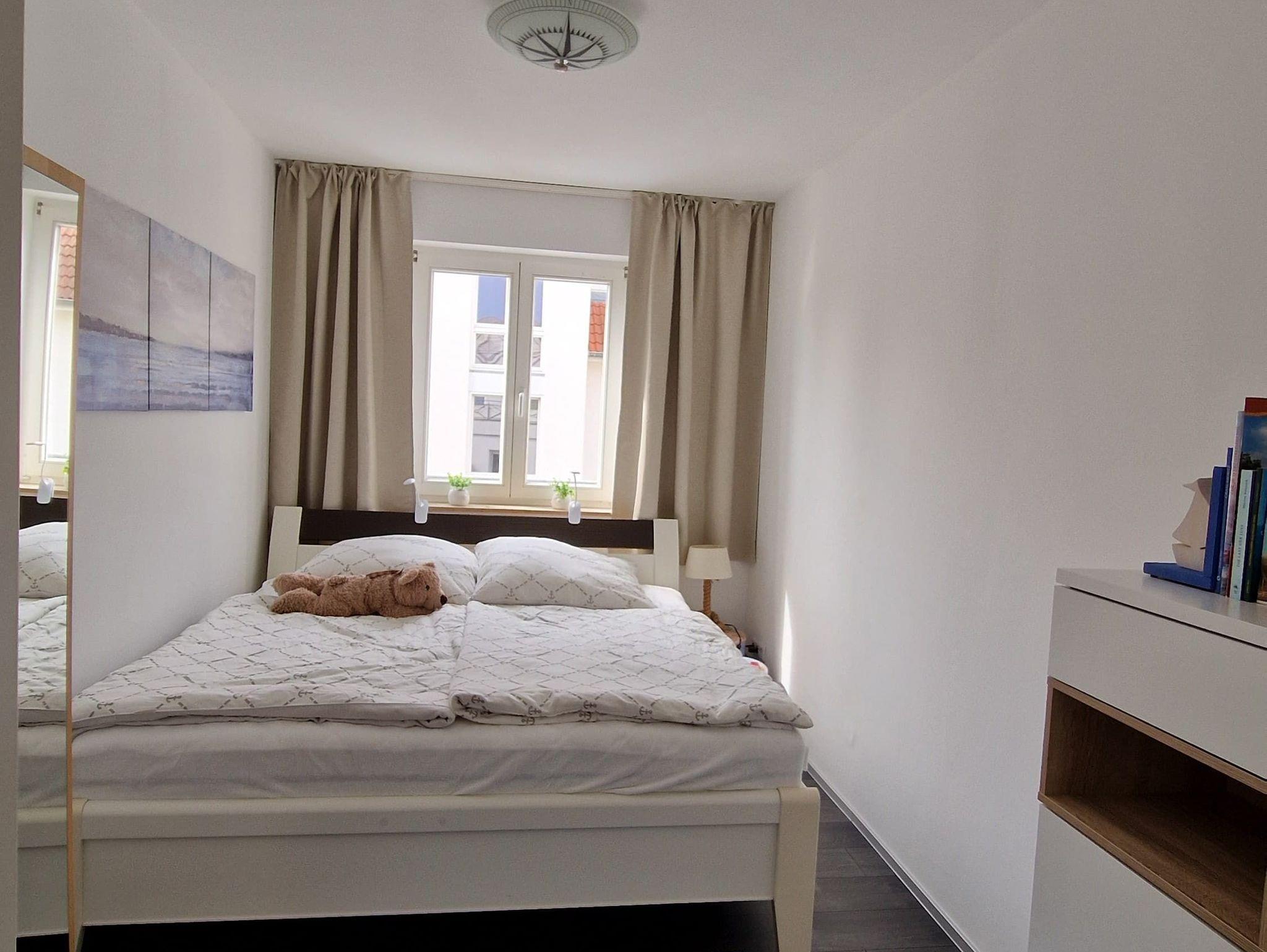 Ihr Urlaubsdomizil befindet sich in der 2. Etage und bietet mit 46 qm genügend Platz für 2 Personen. Hier erwartet Sie ein modernes und mit viel Liebe maritim eingerichtetes Appartement. Wohnzimmer und Küche sind miteinander kombiniert. Ein separates Zimmer mit einem großem Doppelbett bietet Platz zum Schlafen. Das Bad verfügt über eine Dusche und WC. Sie haben Lust auf ein Frühstück oder Abendessen im Freien? Auf dem großen Südbalkon ist das in den Sommermonaten möglich, Stühle, Tisch und Sonnenschirm stehen bereit. Ein PKW Stellplatz ( Nr. 45 ) steht kostenlos zur Verfügung. Einkaufsmöglichkeiten sind in 3 Minuten Fußweg erreichbar. Ab sofort steht kostenlos WLAN zur Verfügung.