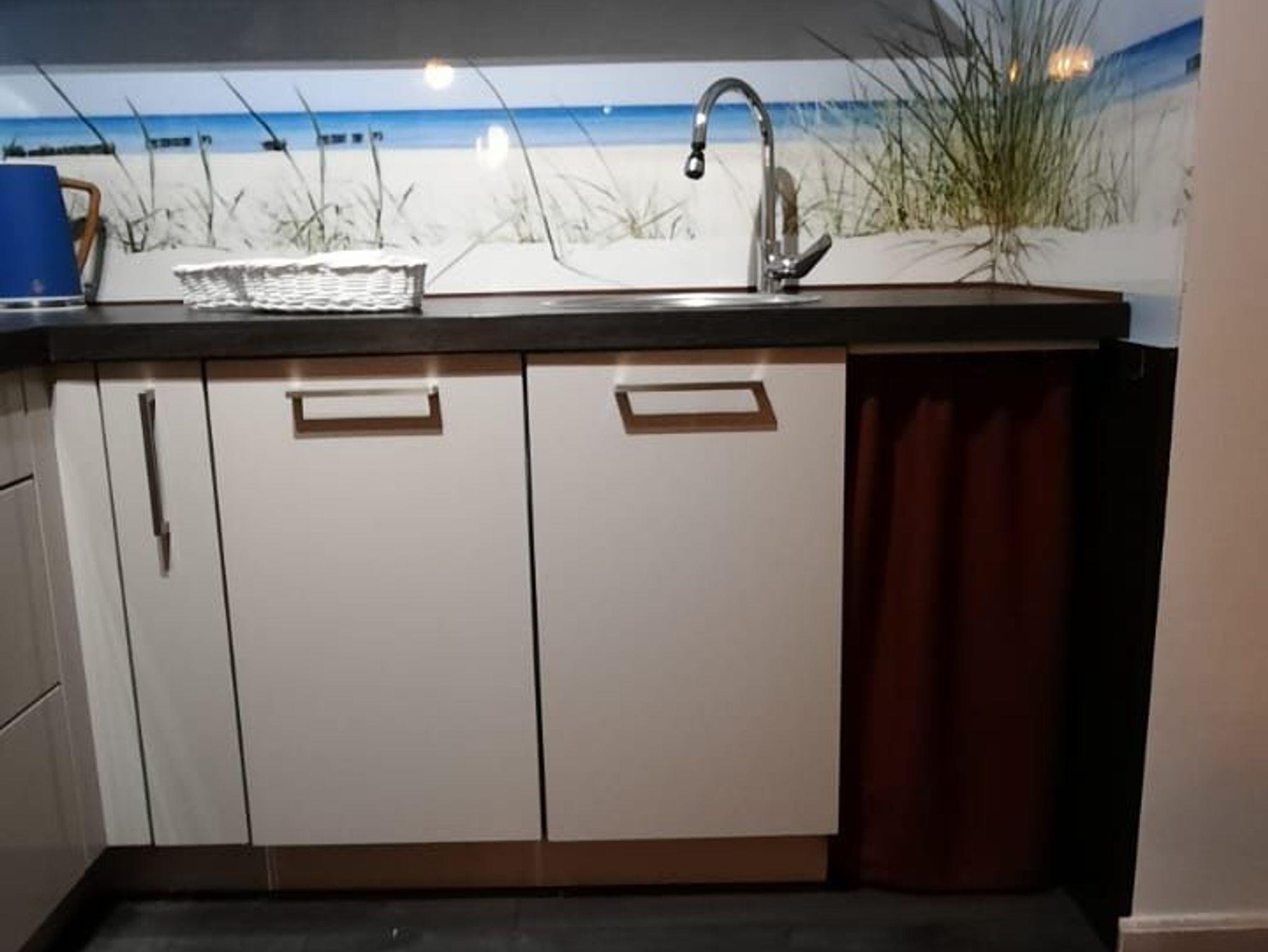 Ceranfeld, Toaster, Kaffeemaschine, Wasserkocher, Kühlschrank mit Gefrierfach, Mikrowelle, Geschirrspüler