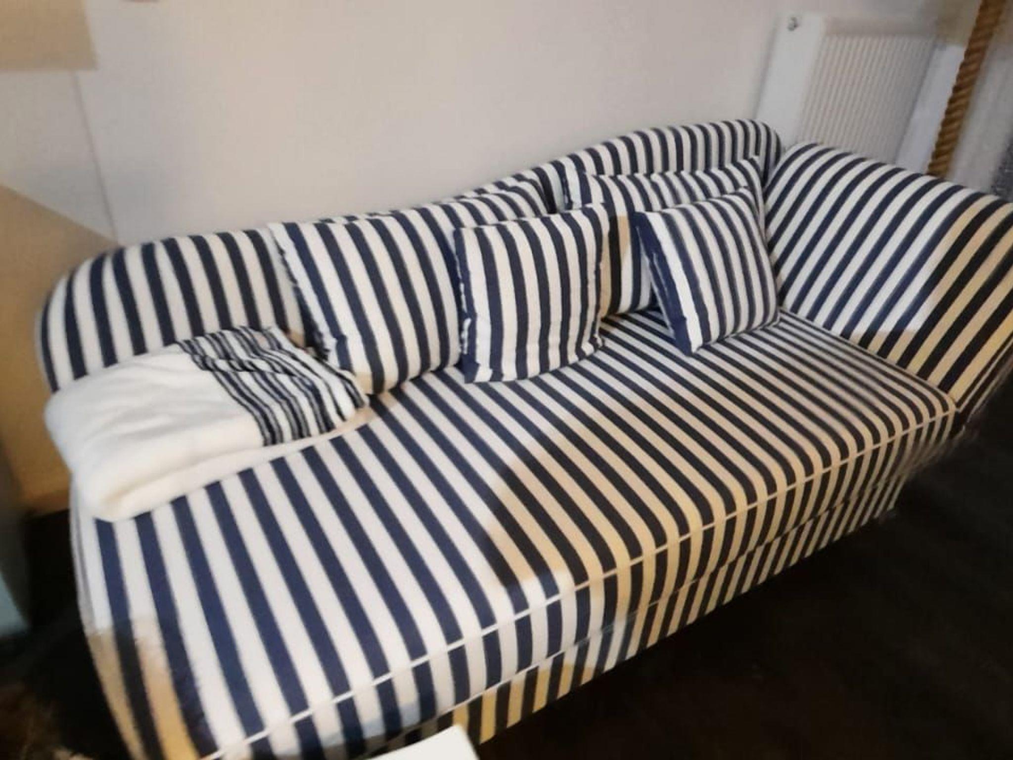 gemütliche Couch mit Schlaffunktion, Flachbild-TV, Sideboard,