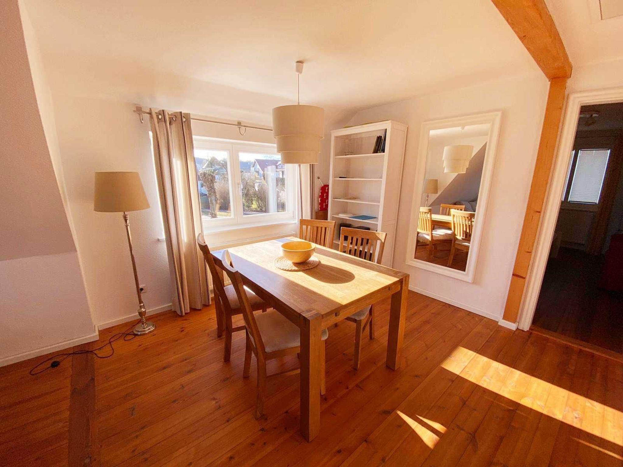 Ferienwohnung „Dünenkrone“ Oben im Haus gelegen, verströmt diese ca. 60 m² große Wohnung mit Holzbalken und Dachschrägen ein warmes, einladendes Ambiente. Mit zwei Schlafzimmern, offenem Wohn-Essbereich und Tageslichtbad bietet sie Platz für bis zu 4 Personen ? perfekt für Familien oder kleine Gruppen.