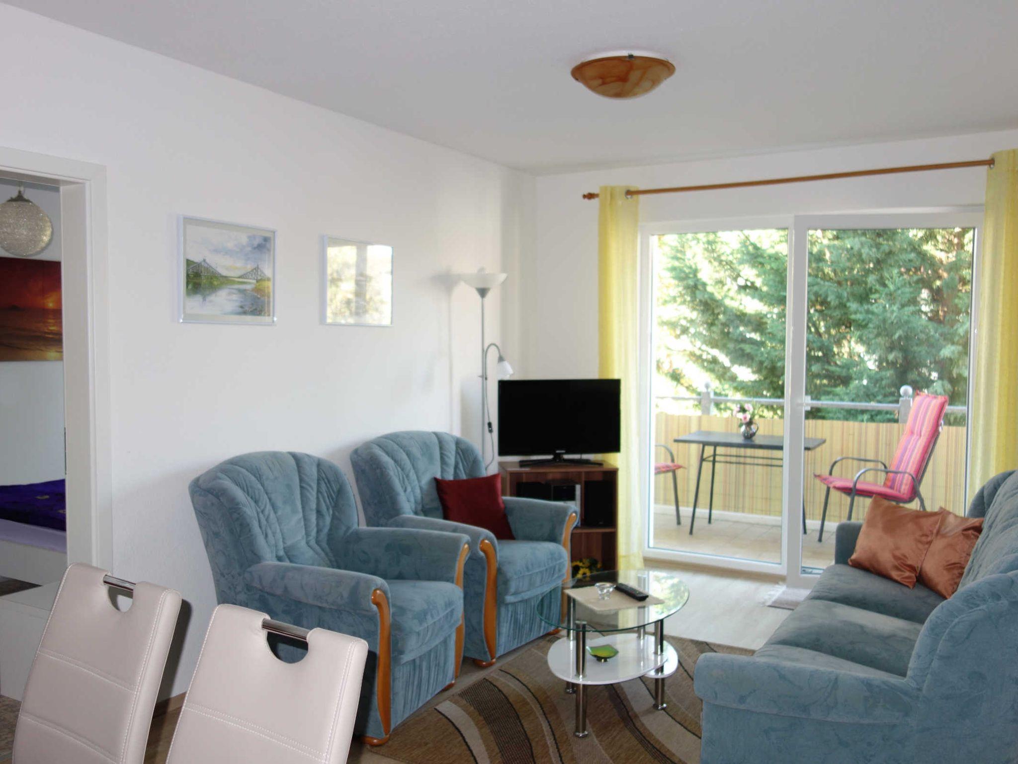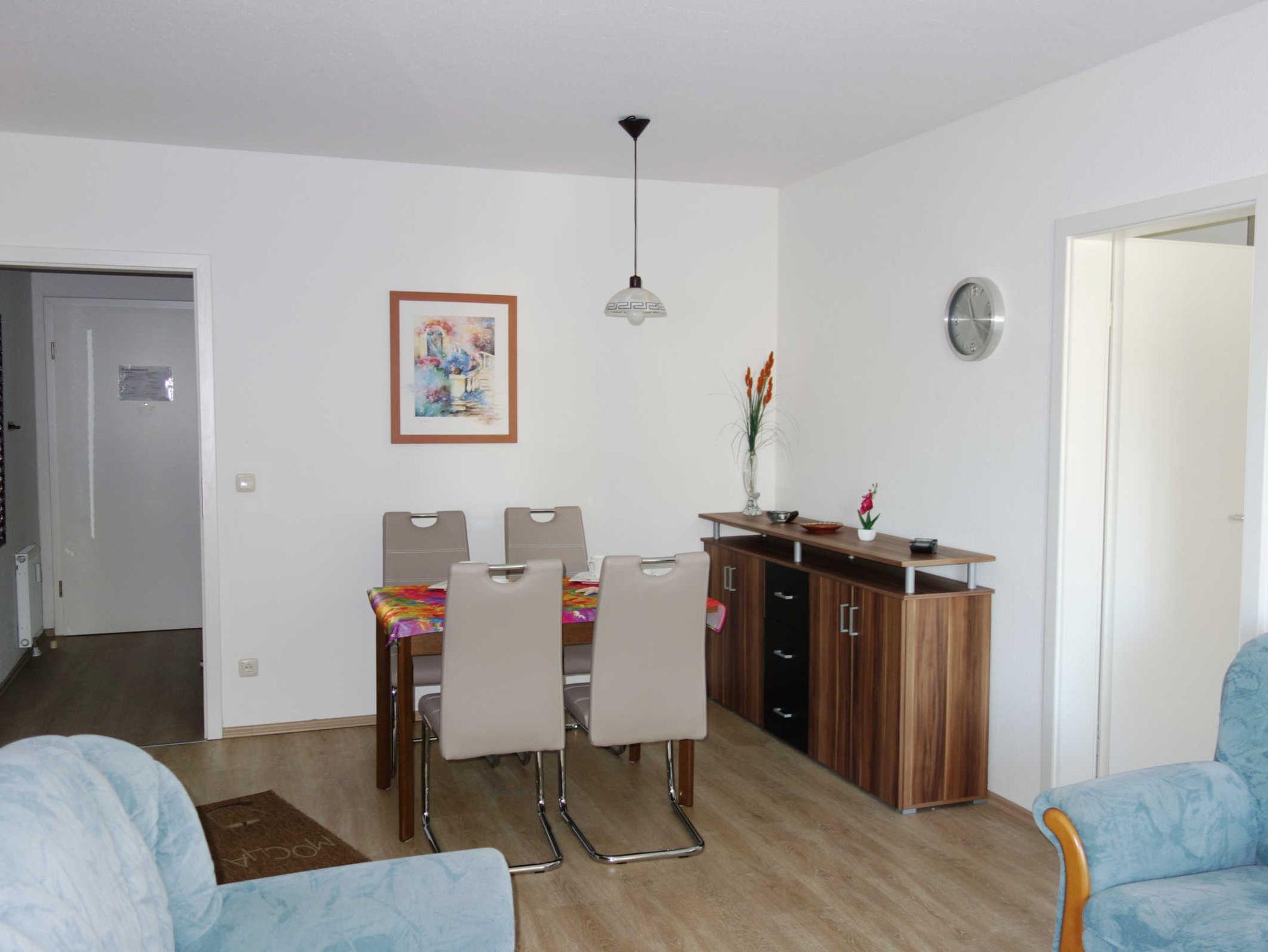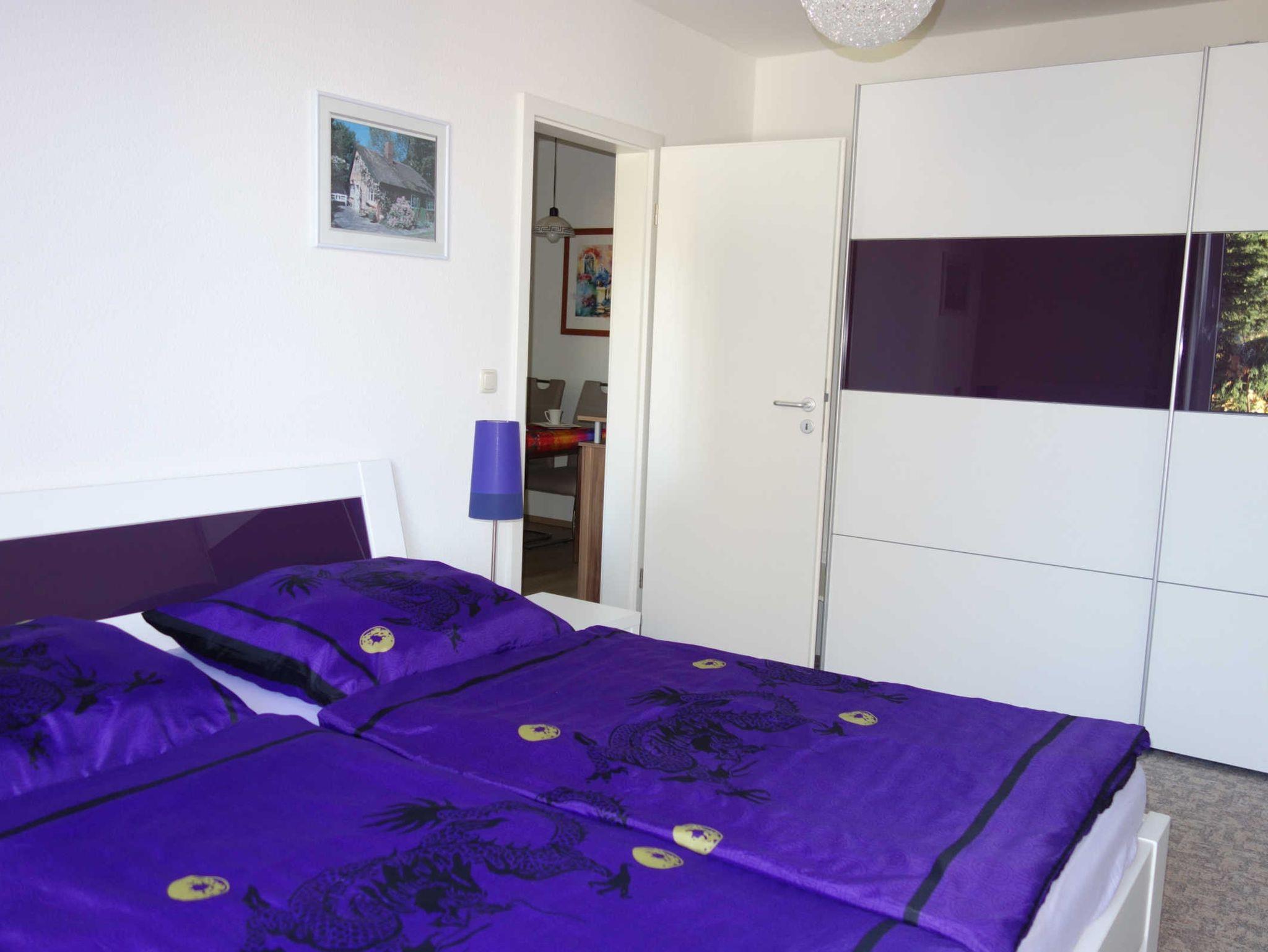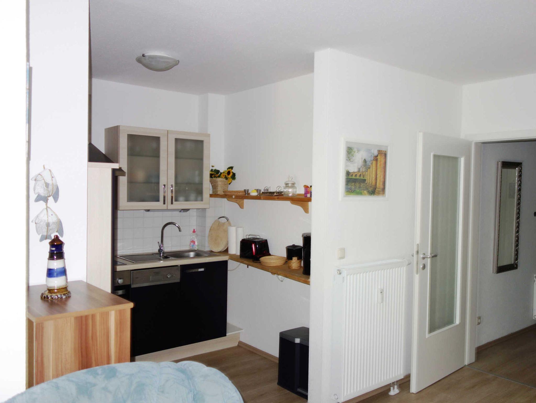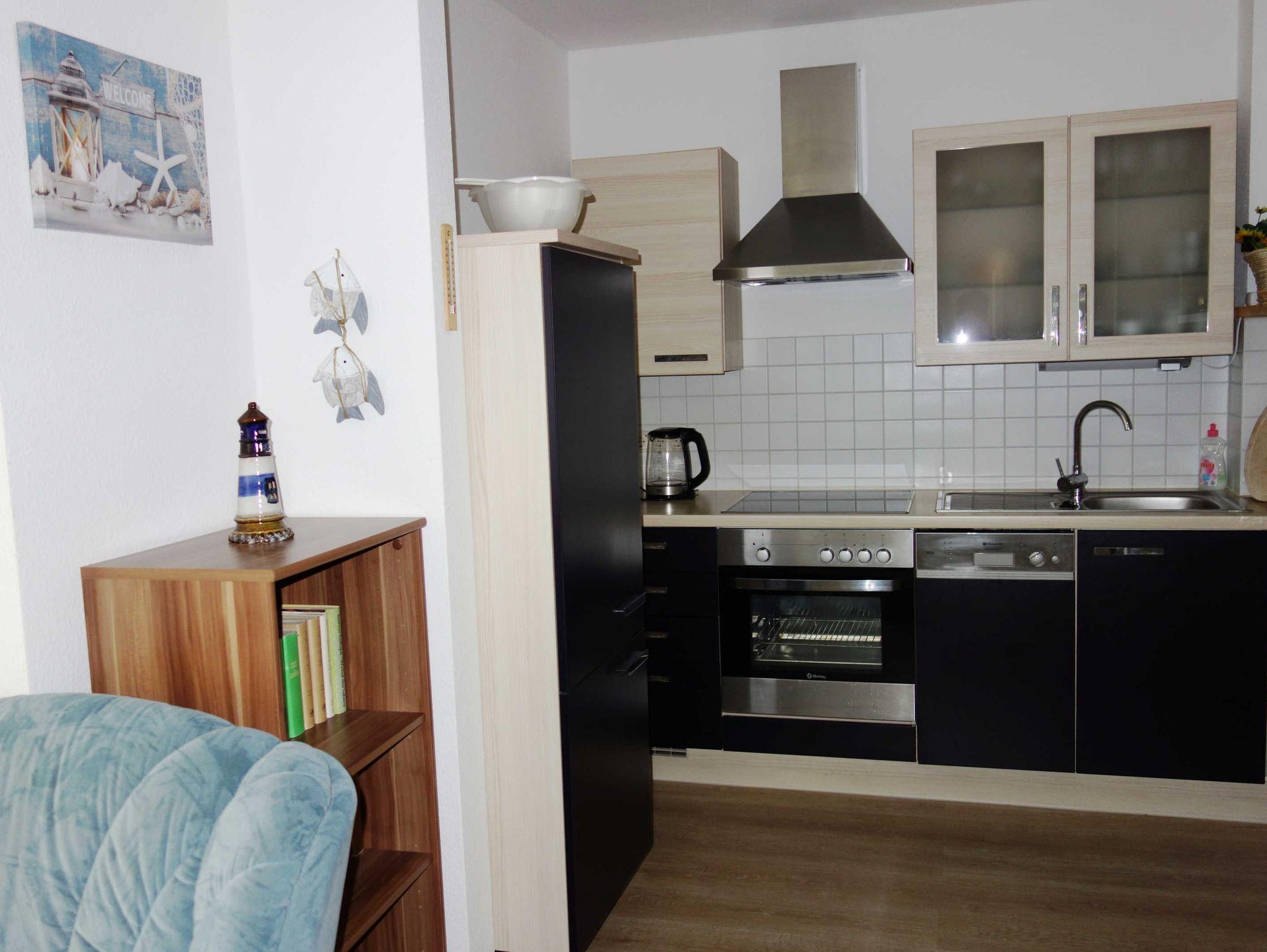 Die 2 Zimmer Ferienwohnung befindet sich im 1.Obergeschoss im Haus Seestern in der Friedensstraße. In der Ferienwohnung gibt es ein Wohnzimmer mit einer Couch und einen Fernseher, eine offene Küche mit einem Backofen, einem Geschirrspüler und einem Kühlschrank, zwei Schlafzimmer (eines mit einem Doppelbett und eines mit einem Etagenbett) sowie ein Bad mit Dusche und WC.