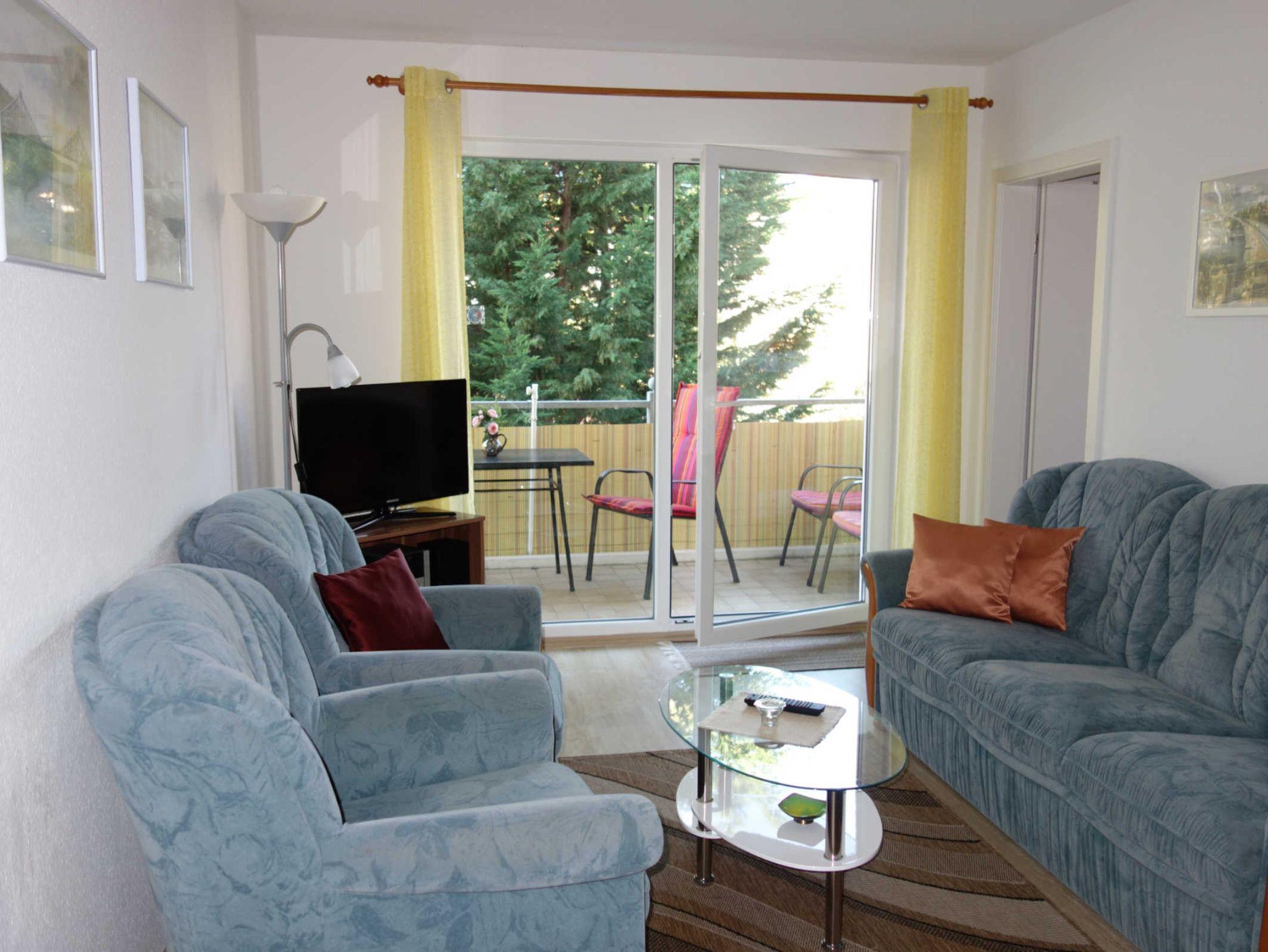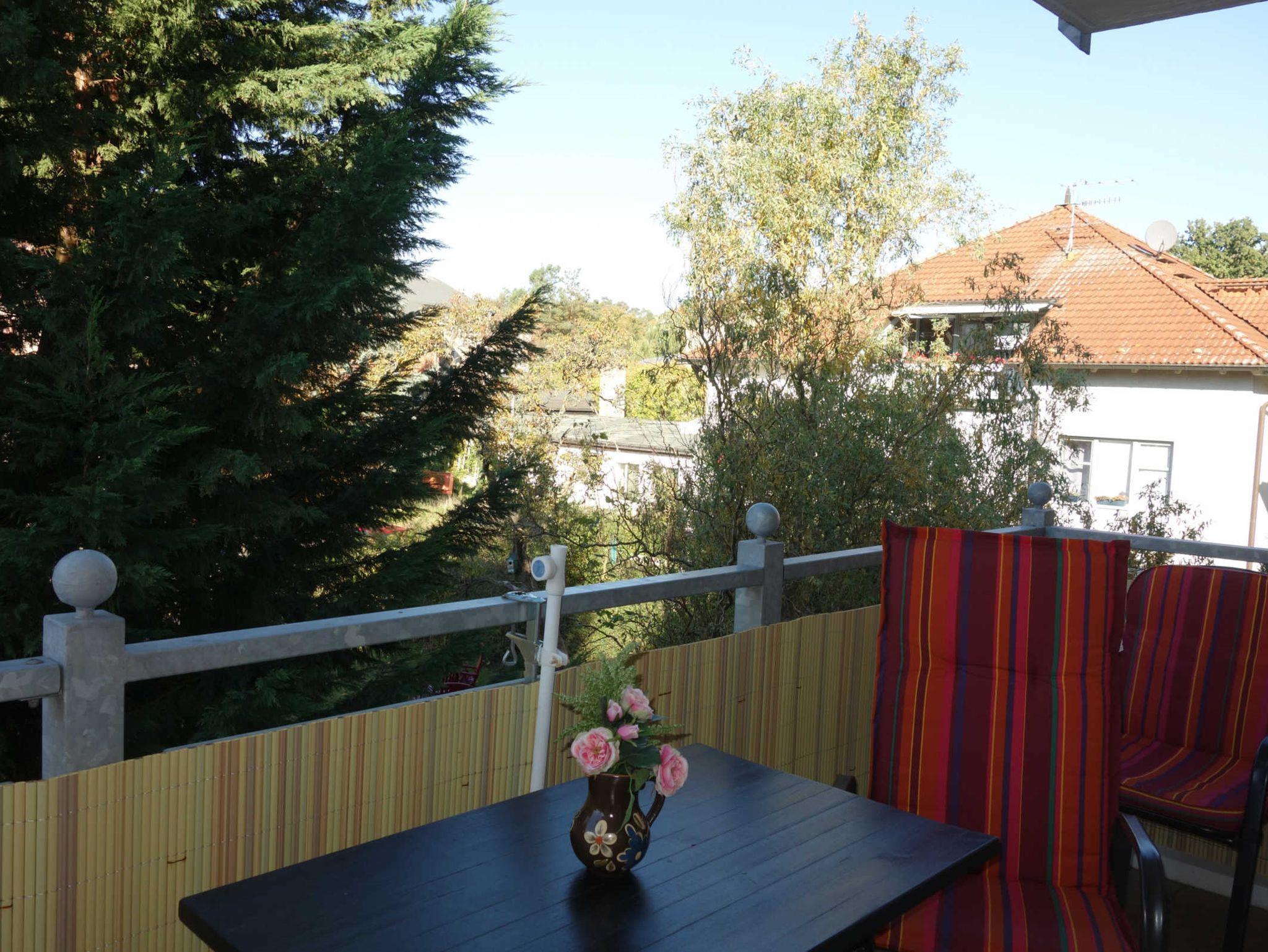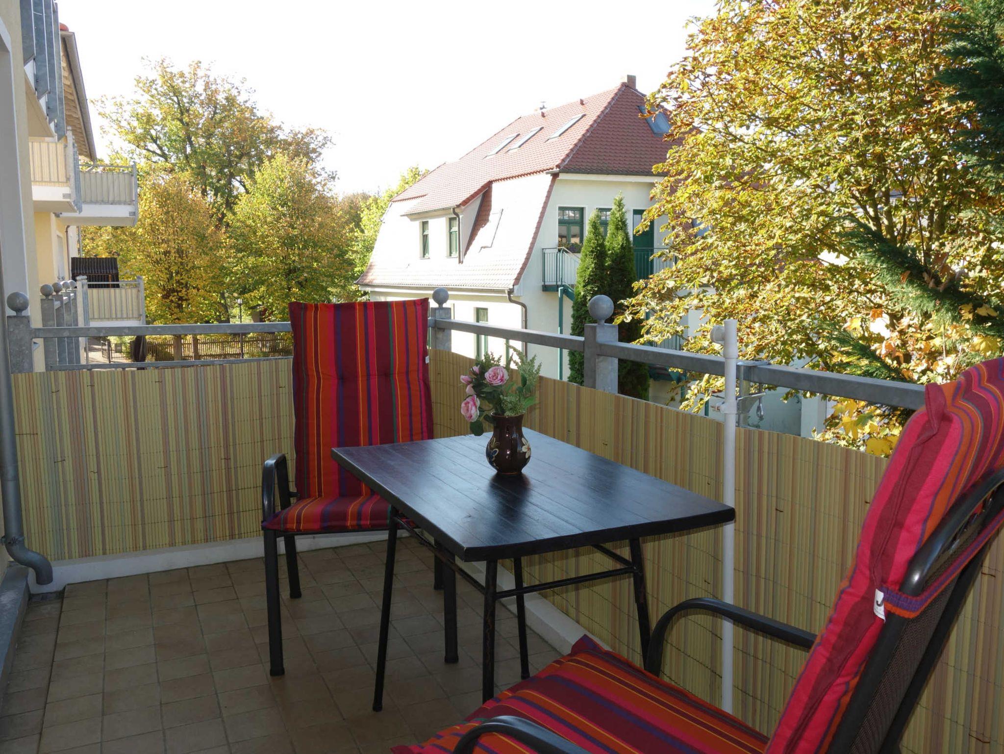 Zu der Ferienwohnung gehören ein Balkon ind ein PKW-Stellplatz in der Tiefgarage.