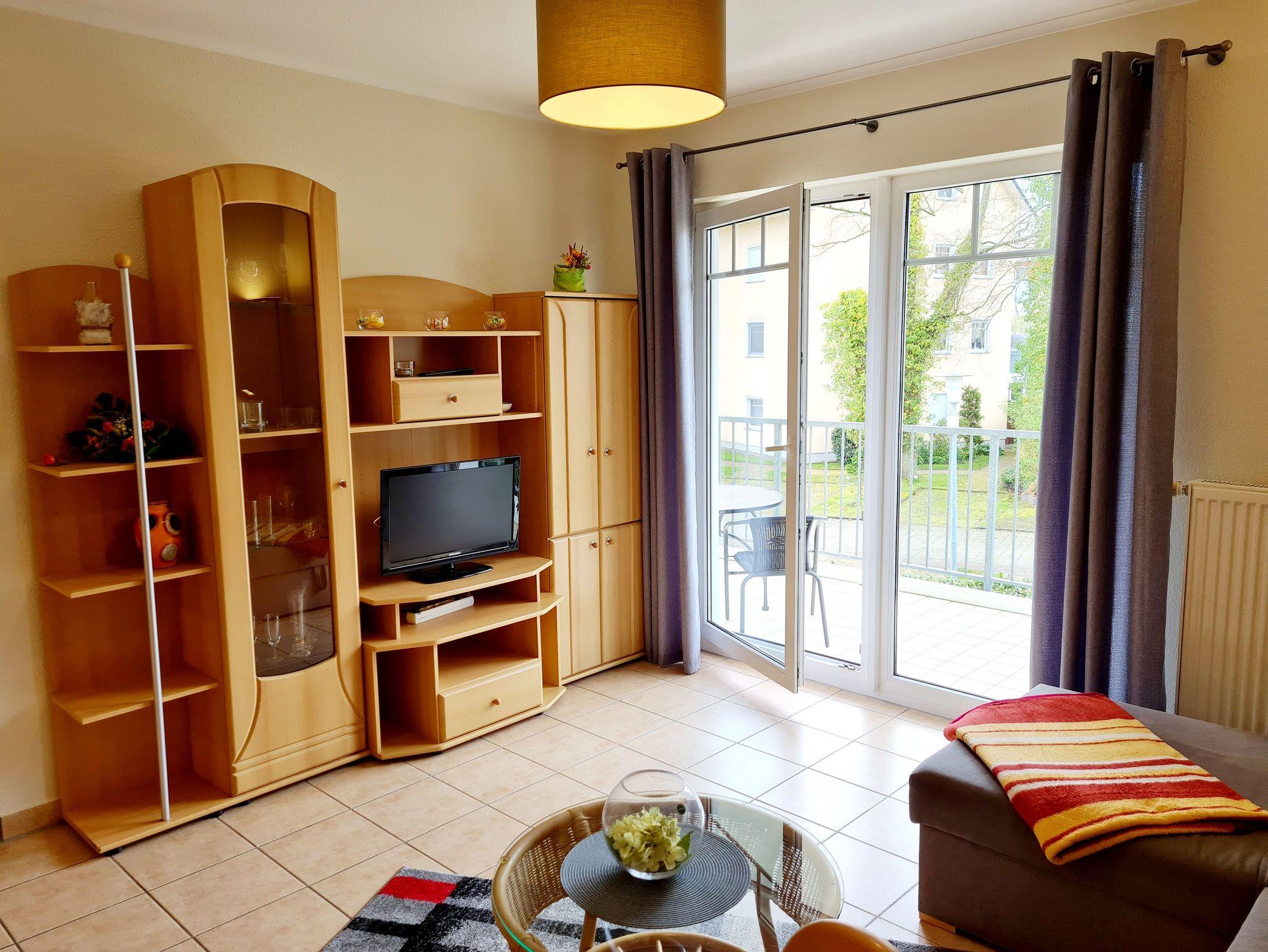Gemütliche 2-Zimmer-Ferienwohnung mit Südbalkon, 350m vom Strand in Graal-Müritz, ideal für 3 Personen, mit kostenlosem WLAN und Parkplatz.