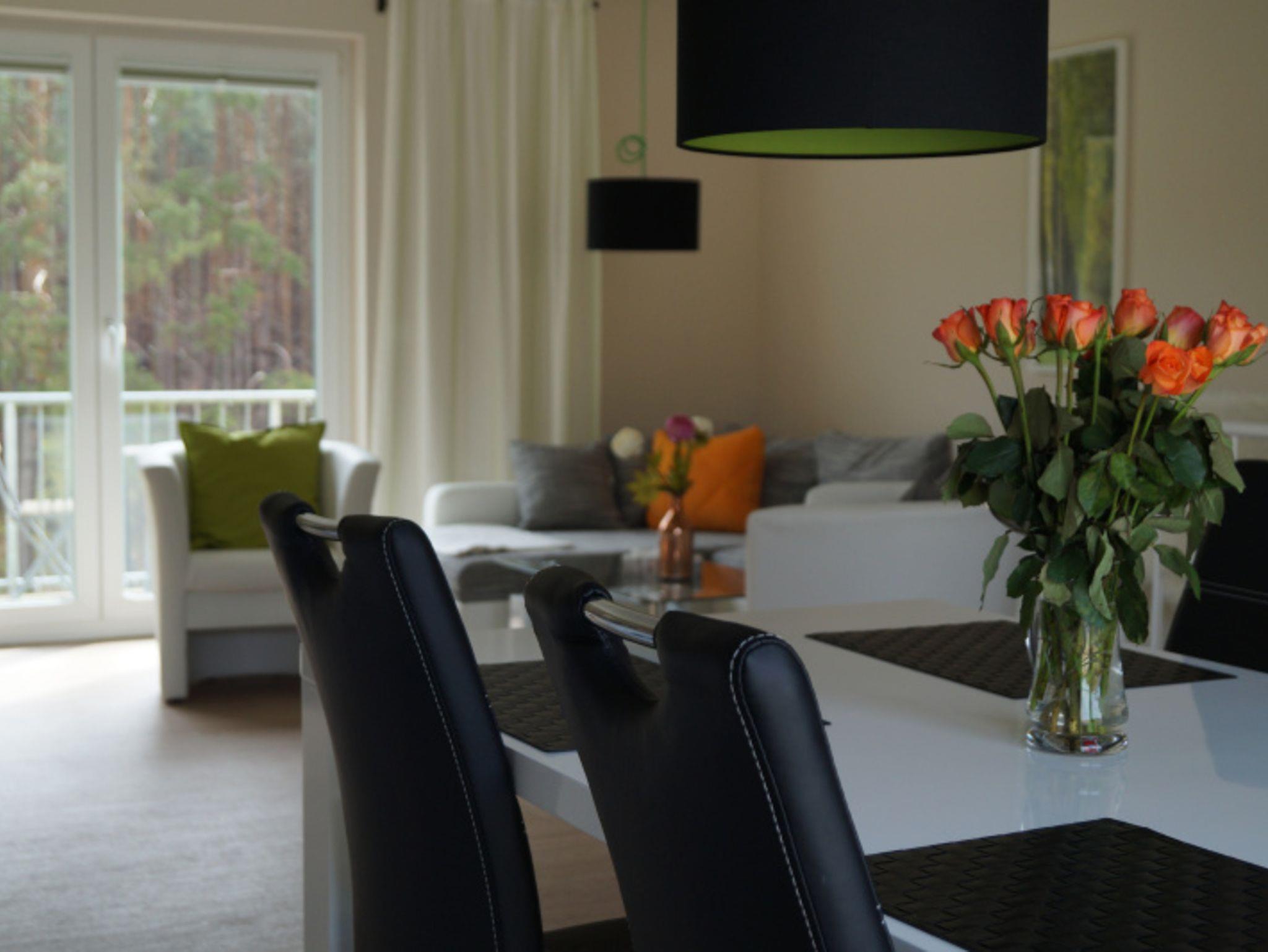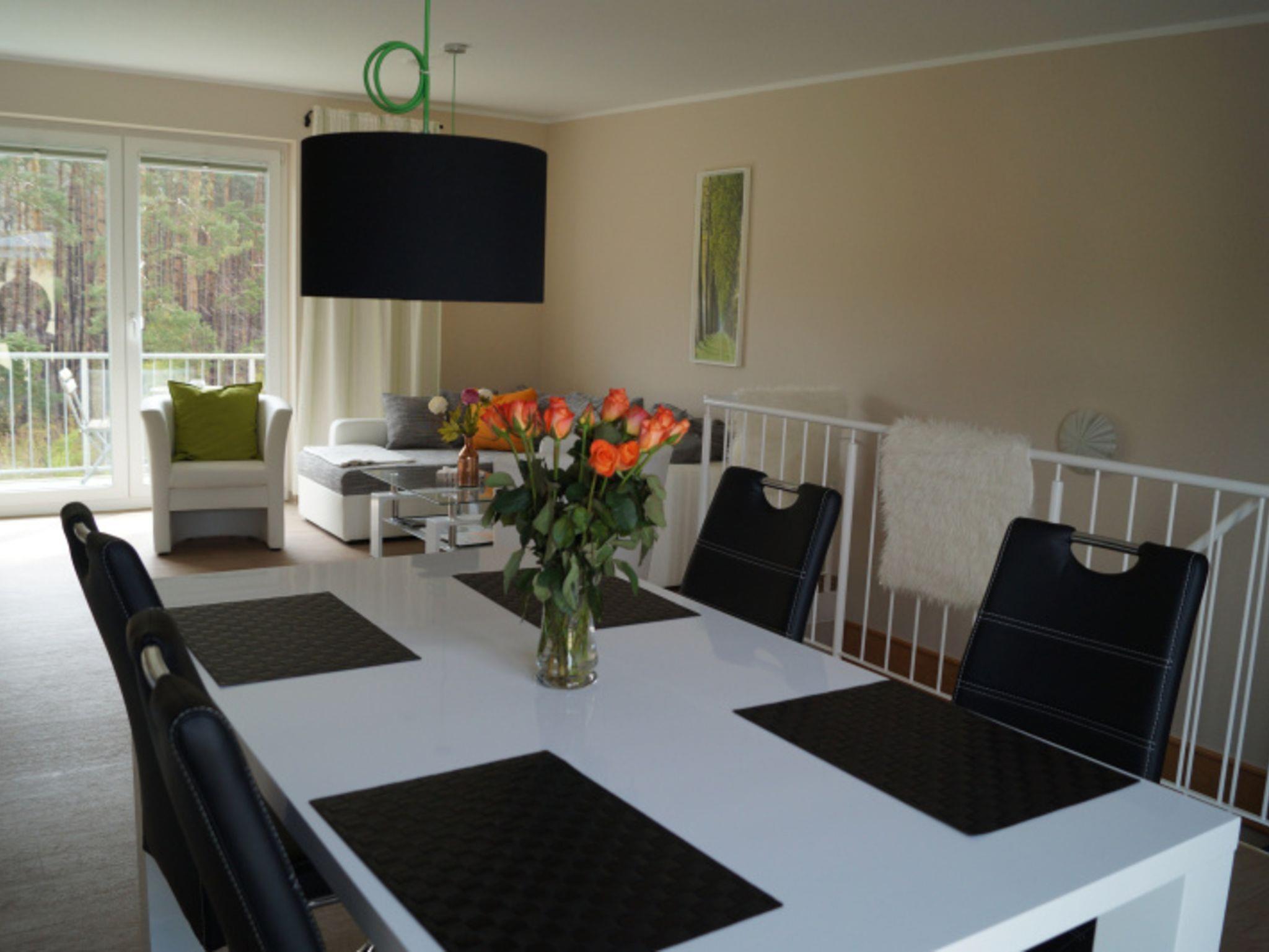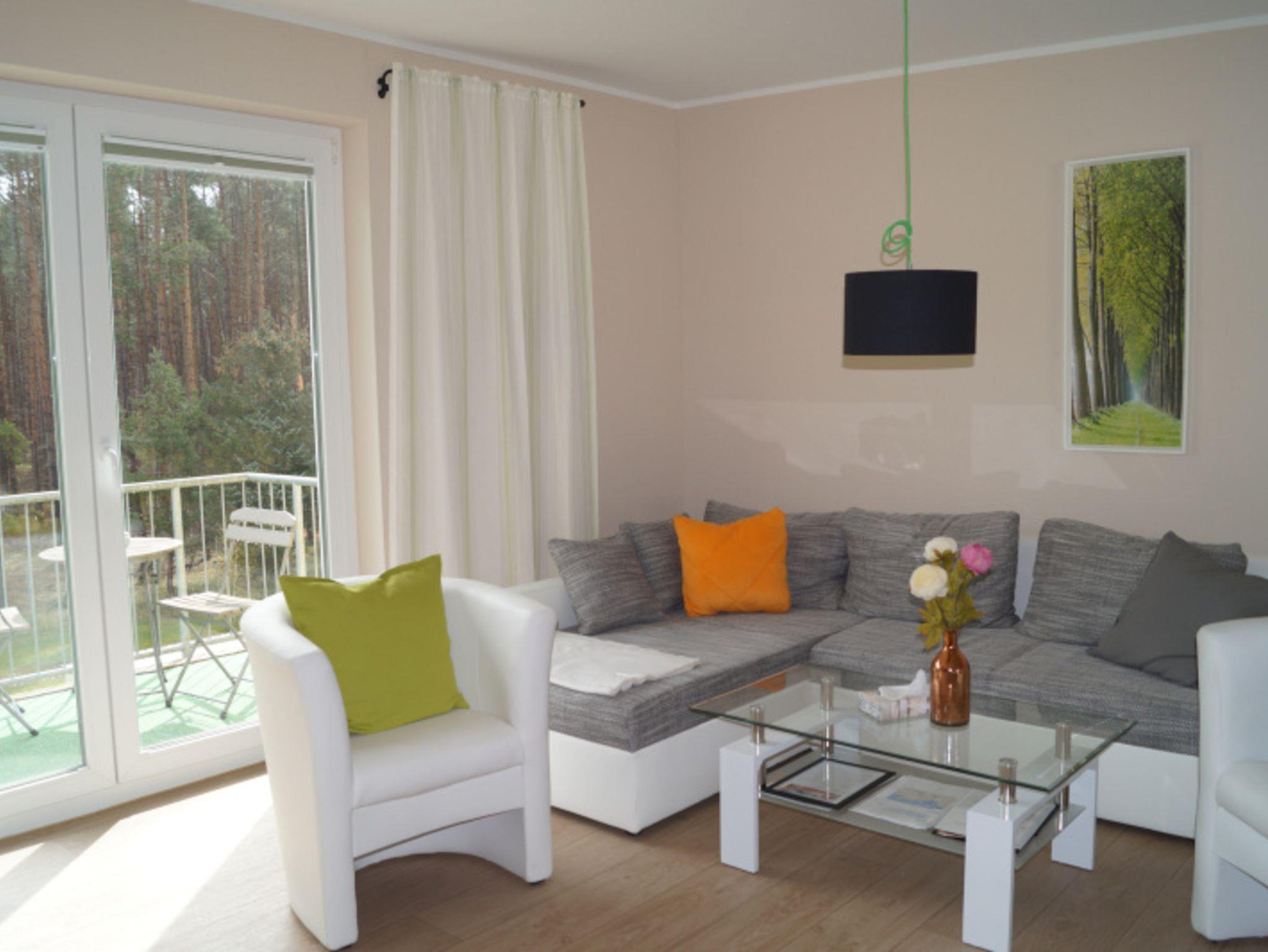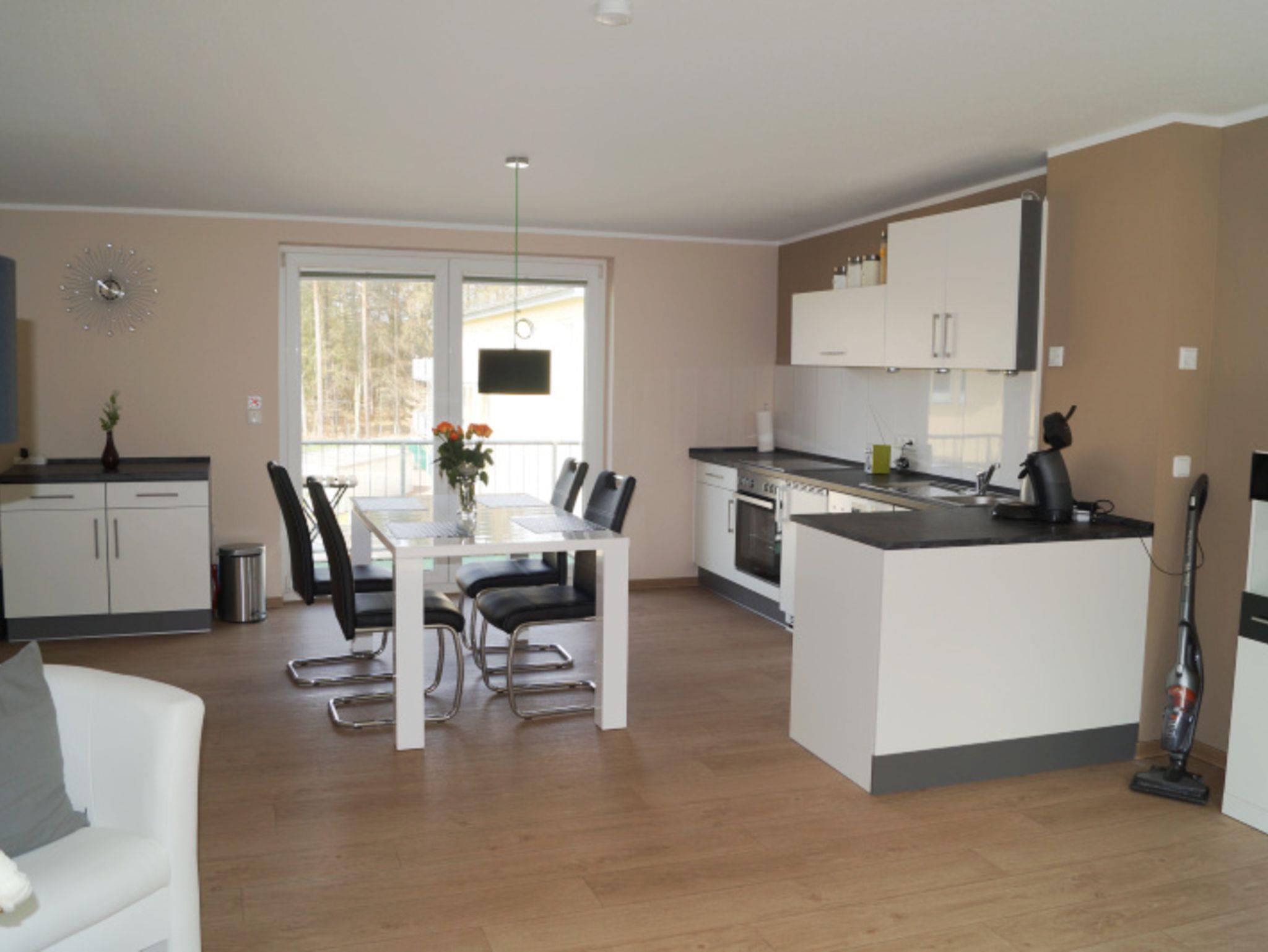 Gemütliche Ferienwohnung im Küstenwald bei Graal-Müritz mit Balkon, moderner Küche und kostenfreiem WLAN für erholsame Urlaubstage.