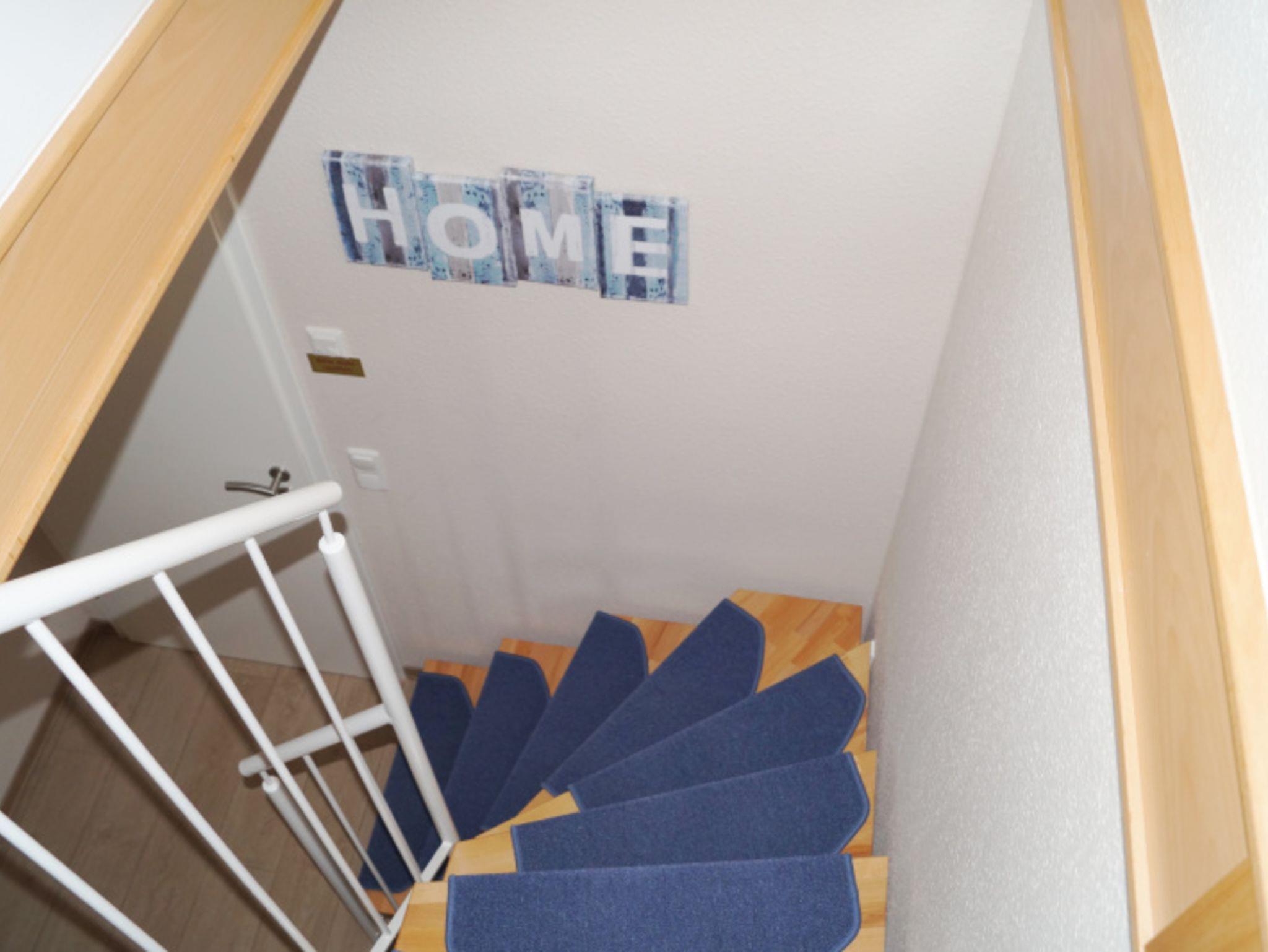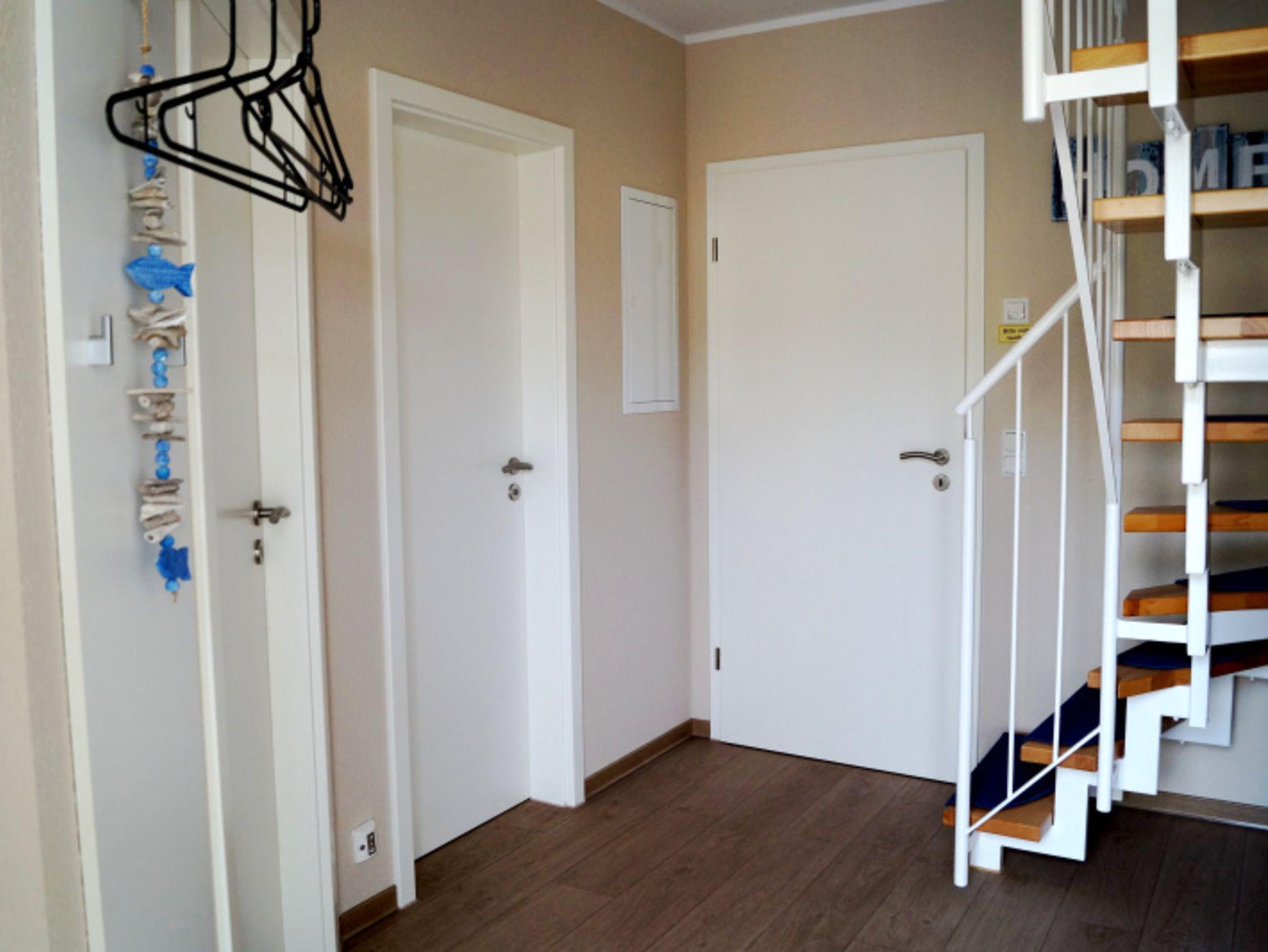 Die Ferienwohnung erstreckt sich über 2 Etagen und verfügt über 2 Schlafzimmer, ein Bad mit Waschtisch, Dusche und WC, eine große Küchenzeile mit Geschirrspüler, Backofen und Kühlschrank sowie über ein Wohnzimmer mit Couch und Fernseher.
