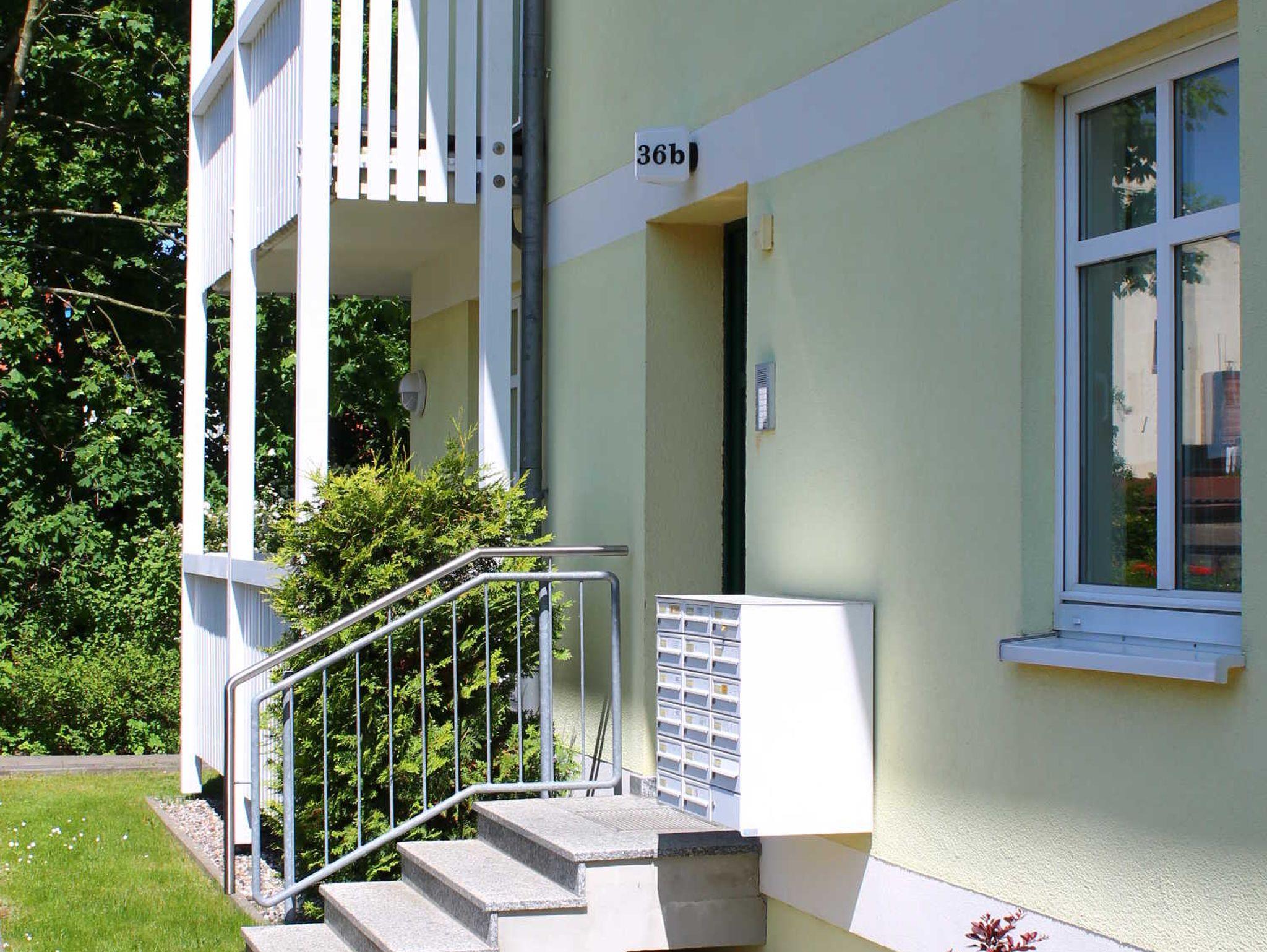 Großzügiges 3-Raum-Appartment im 2. OG mit Südbalkon und Aussicht auf die Kurstrasse und den Küstenwald.