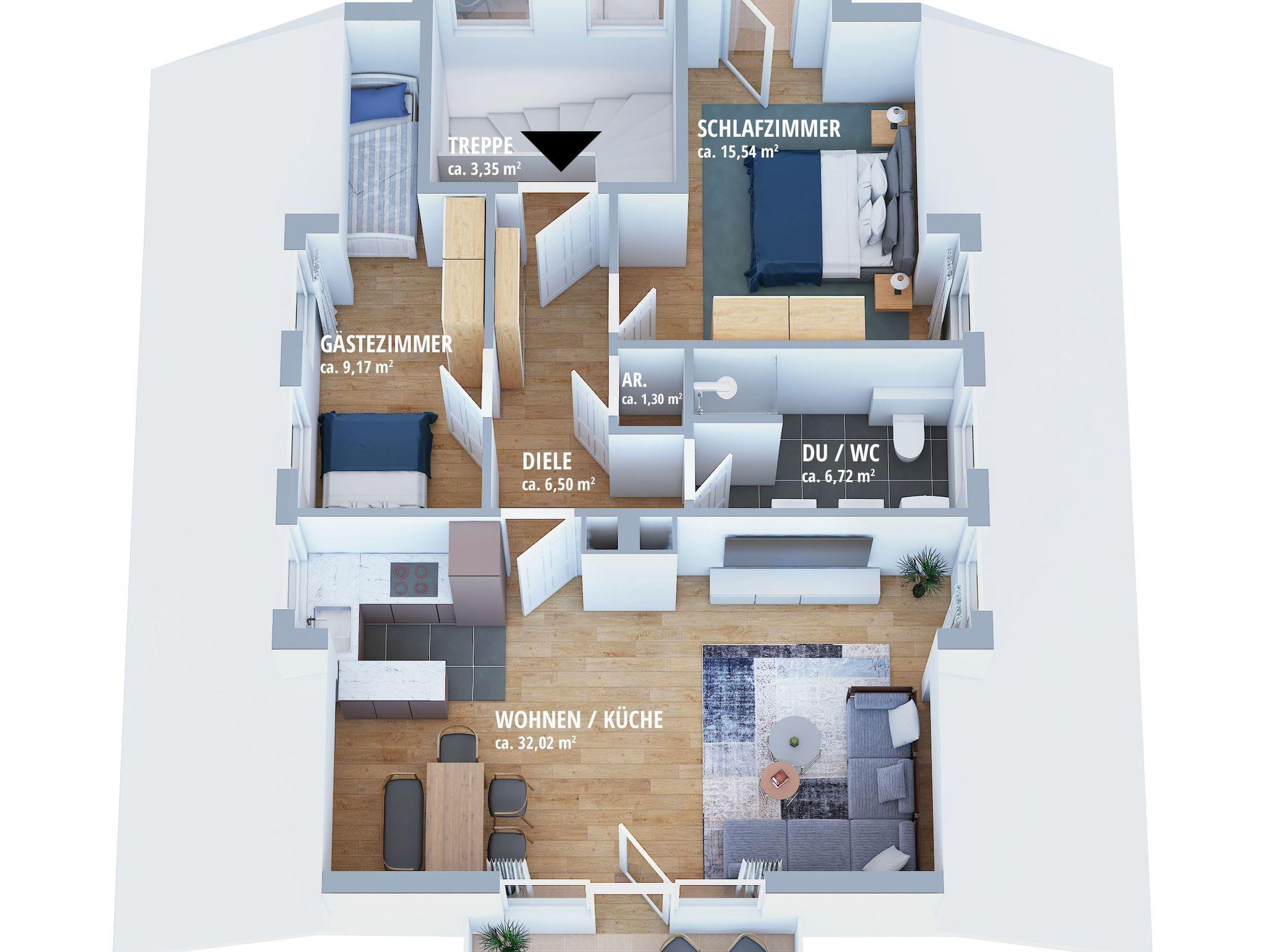 Willkommen im komplett neu sanierten Ferienapartment TREIBGUT (Fertigstellung Mai 2022). Hier erwartet Sie eine gemütliche und luxuriöse 3-Zimmer-Wohnung im Dachgeschoss (2. OG) mit einer Größe von etwa 85m².