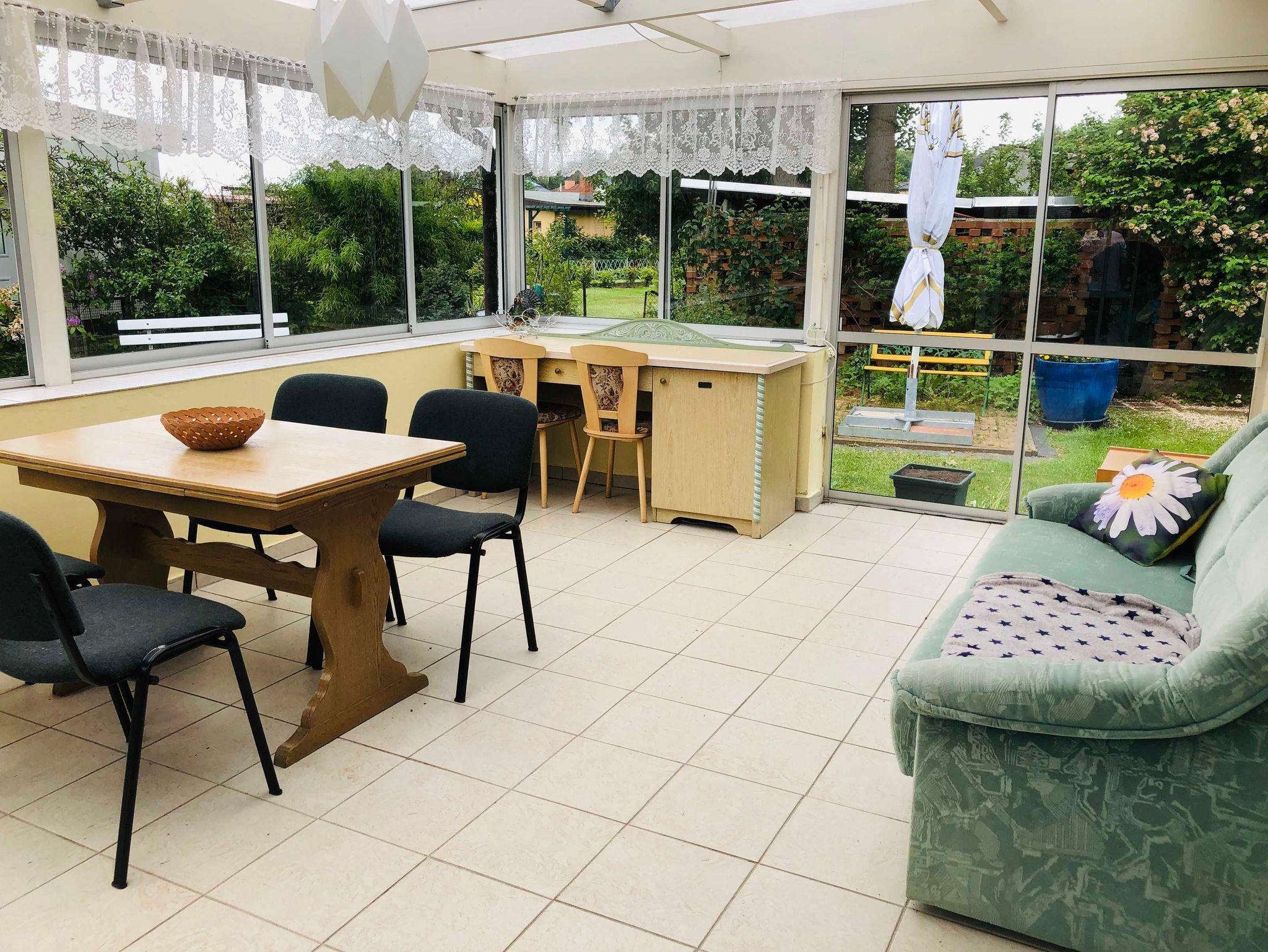 Der Bungalow besticht durch eine ruhige und zentrale Lage und der Weg zum regelmäßig fahrenden Zug nach Rostock ist auch nicht weit.