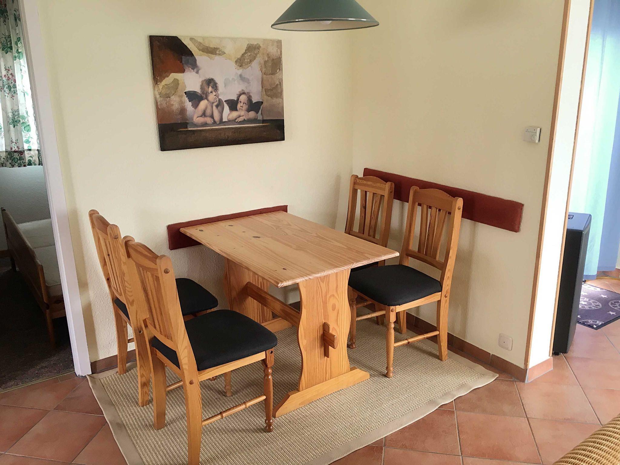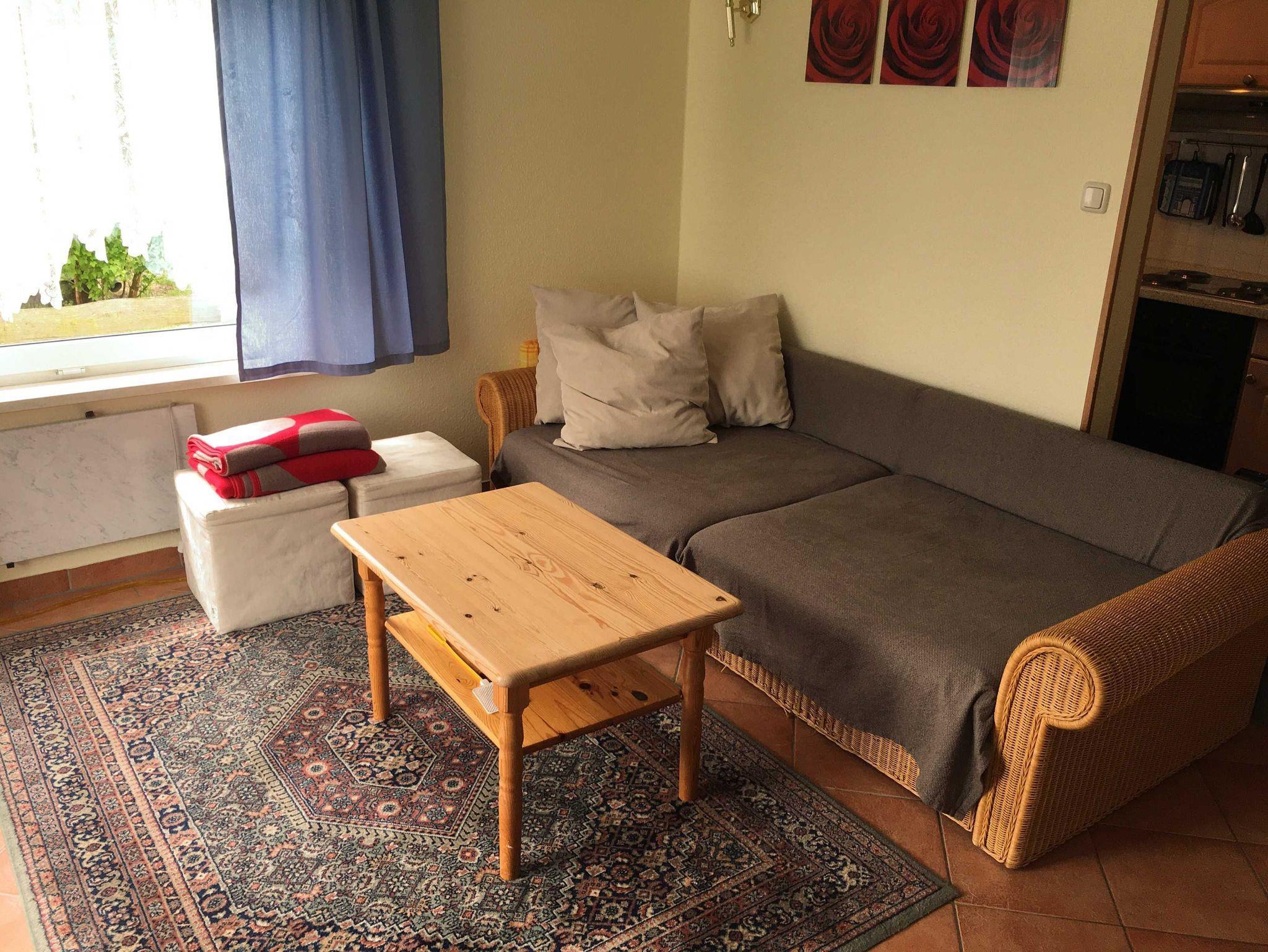 Der Bungalow befindet sich in einer ruhigen Feriensiedlung umgeben von zahlreichen Grünanlagen. Die 50 qm große Wohnfläche ist in 2 Schlafzimmer (eines mit Doppelbett, eines mit Einzel- und Hochbett ausgestattet), einem Bad mit Dusche und Toilette, einem Vorraum und einem großzügigen Wohnbereich, in dem Küche, Ess- und Wohnzimmer ineinander übergehen, geteilt.