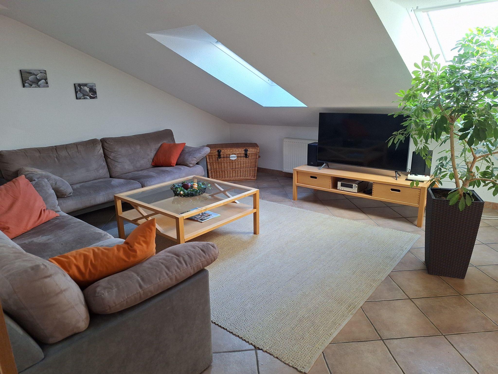 64qm große Fewo in Bäderstilvilla, ruhige Lage, hochwertig ausgestattet, 2 Schlafzimmer (in einem Schlafzimmer steht ein Etagenbett), Südbalkon, 5min zum Strand, Bettwäsche inkl., die Wohnung befindet sich im Dachgeschoß(2.Etage) - Wohnraum offen zur Küche (Wohn- und Schlafraum mit Dachschrägen!) / Parkplatz-Nr. 12