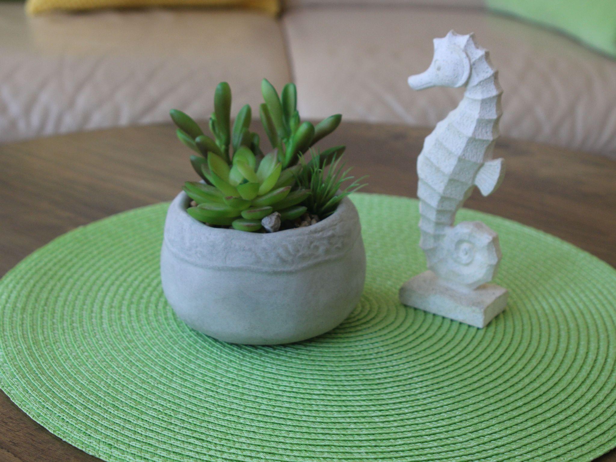 • komfortabel, schick eingerichteter Wohnraum mit Esstisch in den tollen Farben beige und grün
