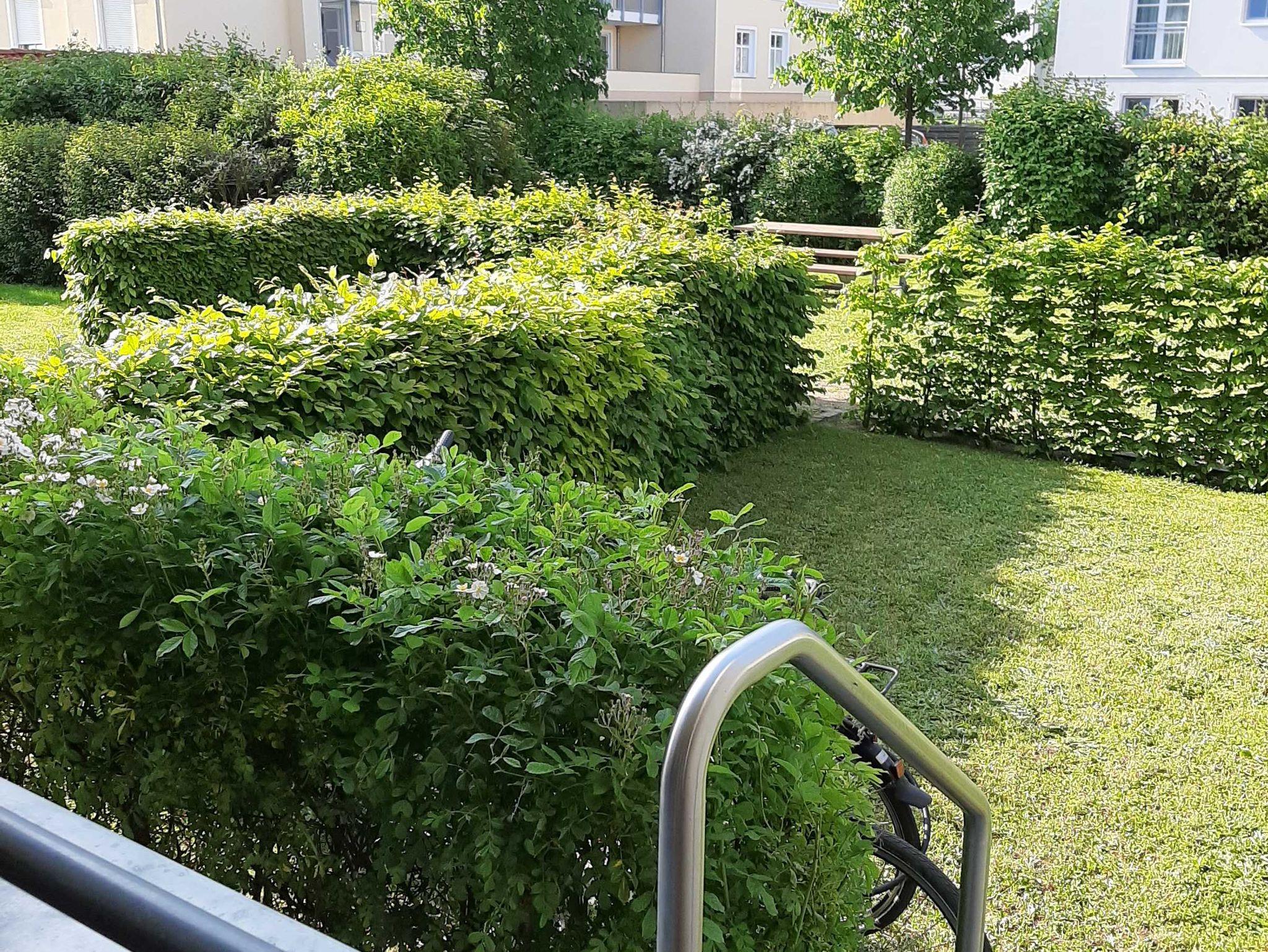 • Terrasse: Südausrichtung mit Balkonmöbeln und kleinem Garten