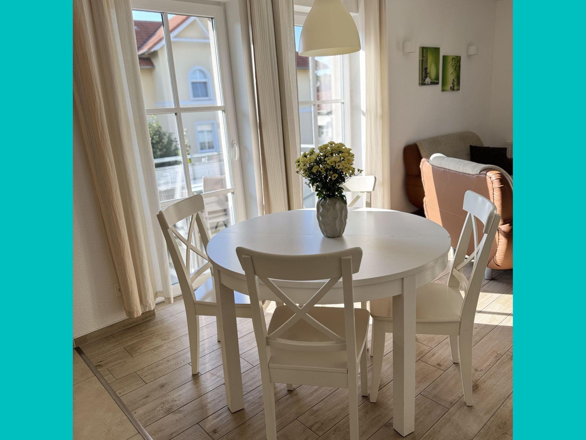 Helle und familienfreundliche Ferienwohnung mit Balkon nahe Strand und Rhododendronpark in Graal-Müritz.