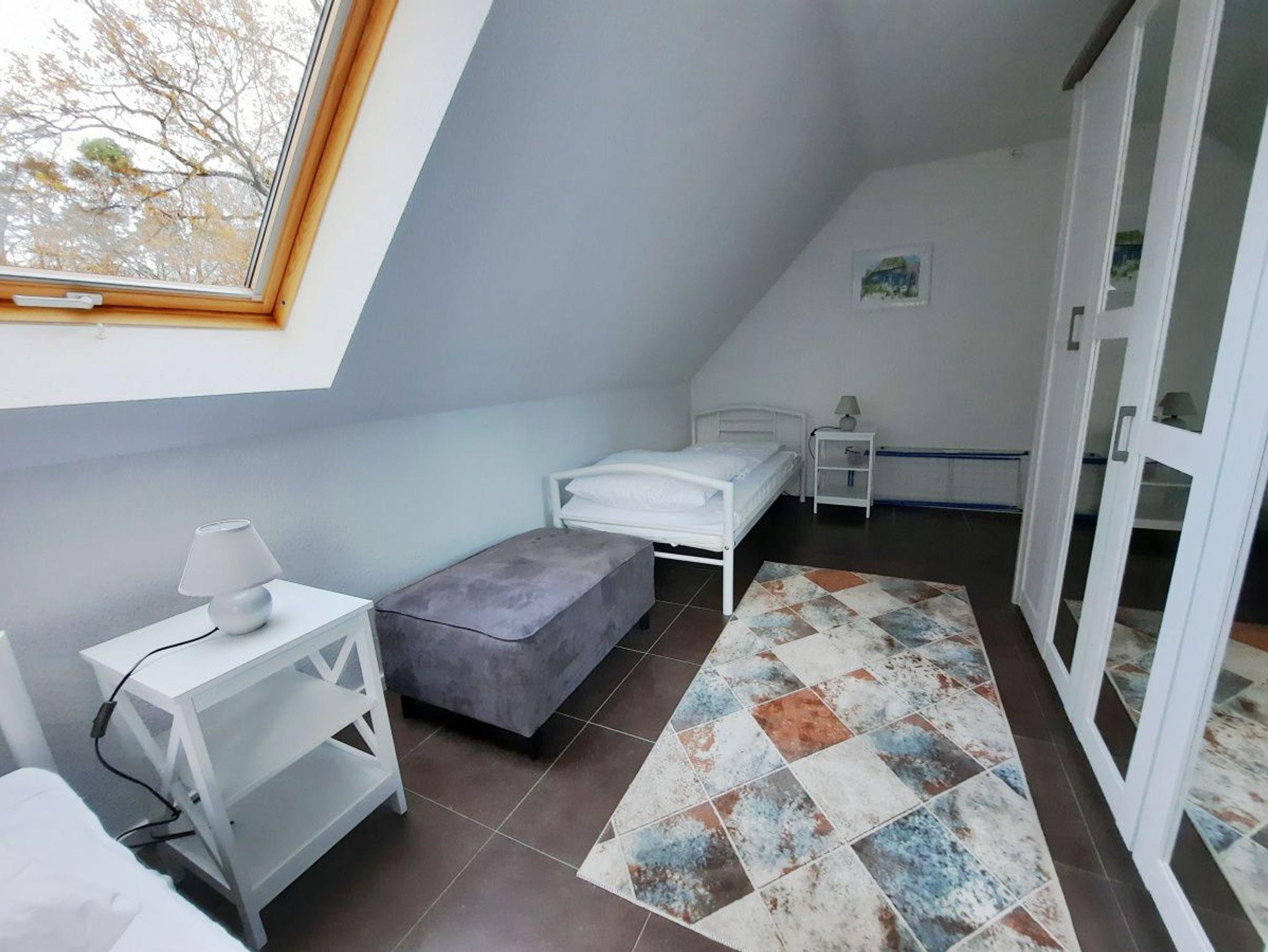 Die 3-Zimmer-Ferienwohnung befindet sich im 2. Obergeschoss eines Mehrfamilienhauses und erstreckt sich über zwei Ebenen. In der etwa 65 qm großen Unterkunft finden bis zu 4 Personen Platz. Vom Flur aus gelangen Sie in das gemütliche Wohnzimmer mit offener Küche. In der Küche befinden sich ein Geschirrspüler, eine Mikrowelle, ein Ceranfeld mit 4 Kochplatten, eine Kaffeemaschine und ein Wasserkocher. Das untere Schlafzimmer ist mit 2 Einzelbetten (jeweils 90x200 cm) und einem Kleiderschrank ausgestattet. Über eine Treppe gelangen Sie zum zweiten Schlafzimmer (offene Galerie) mit Doppelbett (180 x 200 cm), Kommode und einem Sessel. Alle Wohn- und Schlafräume sind mit Rollos zum Abdunkeln ausgestattet. Im Bad befinden sich eine Dusche und ein WC. Vom Wohnzimmer geht der große sonnige Balkon ab, ausgestattet mit Balkonmöbeln. Zu Ihrer Ferienwohnung gehören weiterhin ein abschließbarer Fahrradschuppen sowie ein PKW-Parkplatz direkt vor dem Haus.
