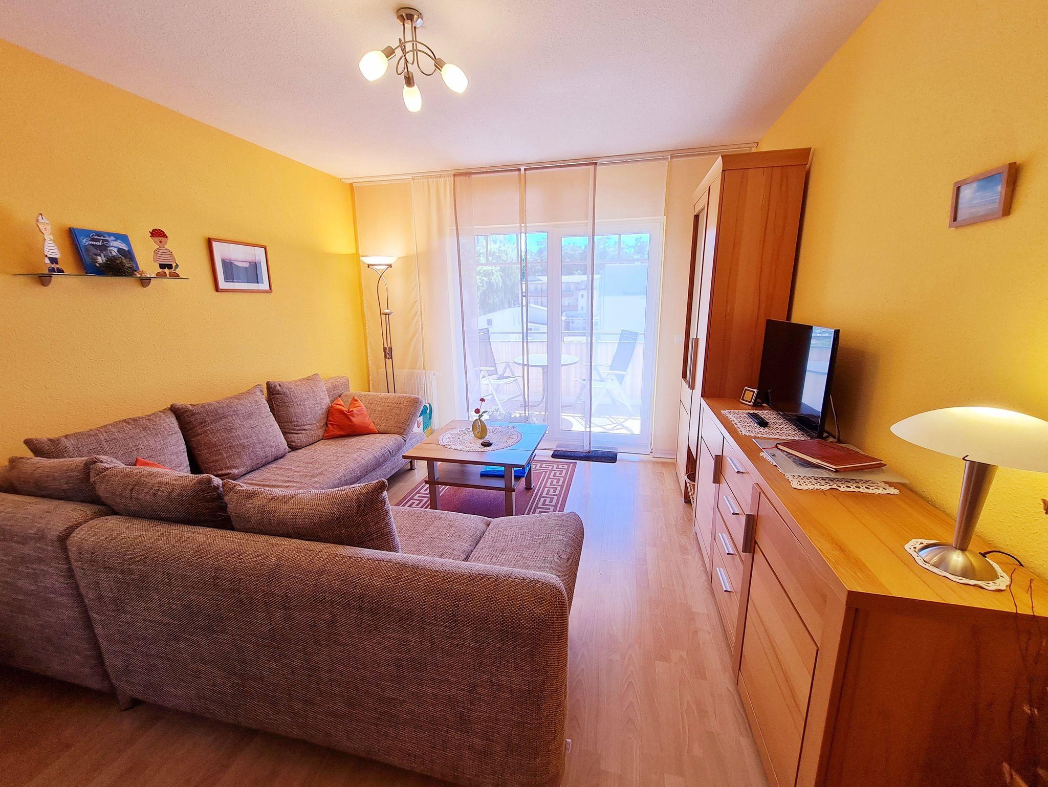 Nur 350m vom Strand entfernt liegt diese gemütlich und modern eingerichtete 2-Raum-Wohnung im 2. OG mit ca. 48 m² Wohnfläche und einem sonnigen Südbalkon. Die sehr helle und freundliche Wohnung kann mit bis zu 2 Personen (3. Person auf Anfrage) genutzt werden. Ein gemütliches Schlafzimmer, bieten Platz für 2 Personen. Praktisch erreichbar befindet sich vor dem Objekt ein abschließbarer Außenabstellraum, der Platz für Fahrräder o.ä. bietet. Der Wohnung ist ein kostenloser Stellplatz Nr. 30 zugeordnet. Ebenso verfügt die Wohnung über kostenloses Wlan und eine Waschmaschine steht Ihnen hier auch zu Verfügung.