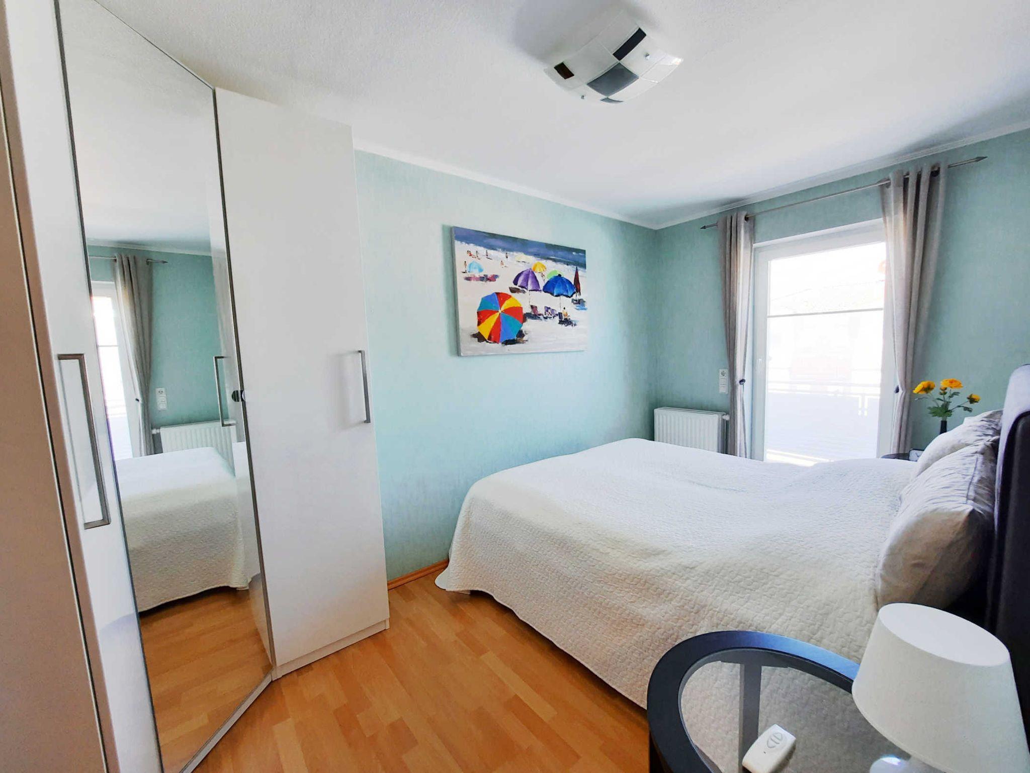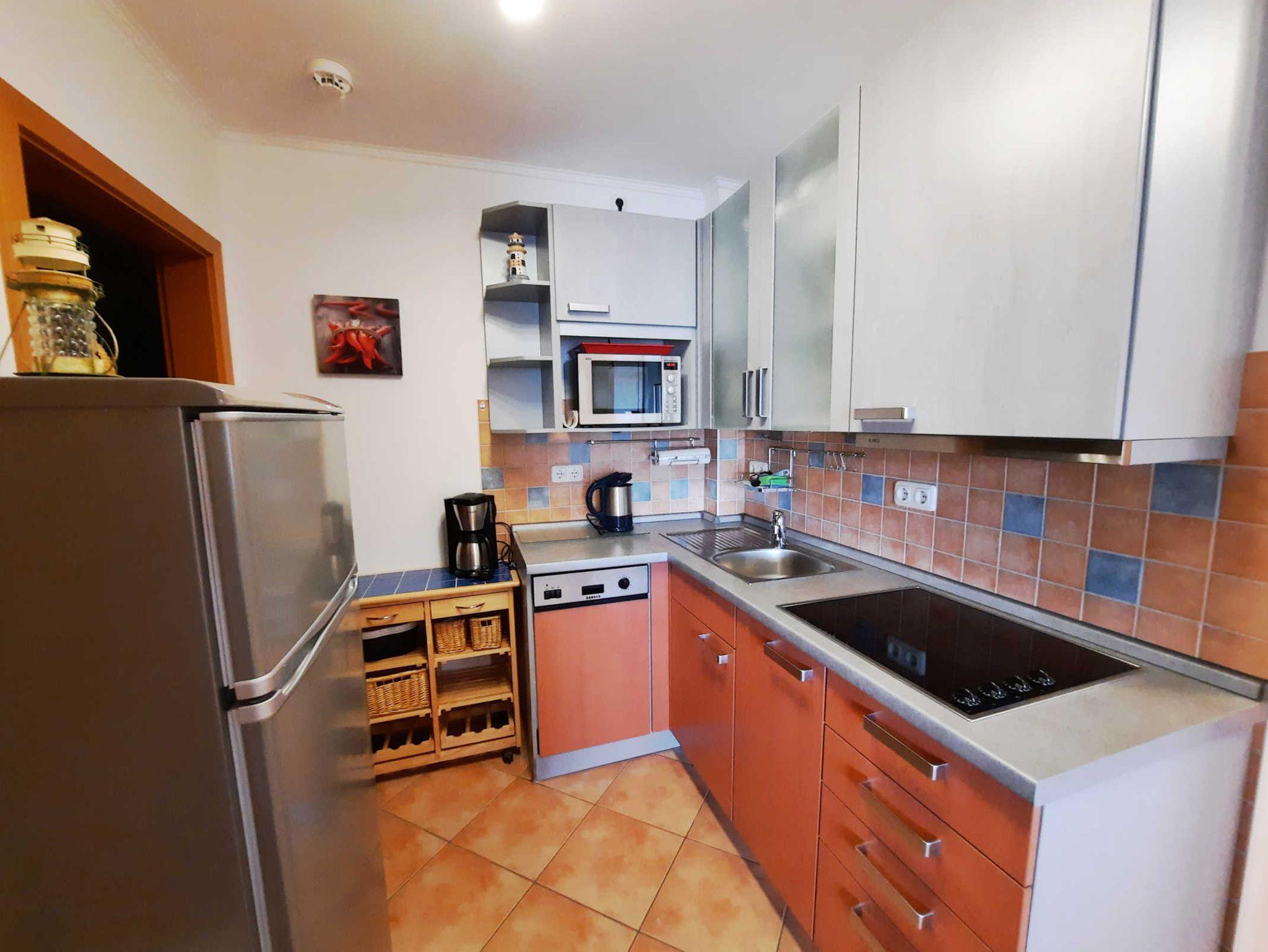 Hier ist Ihre Wohlfühloase. Beim Betreten dieser Wohnung lassen Sie den Alltag sofort hinter sich. Lassen Sie sich überraschen. Im Urlaub anders wohnen als zu Hause. Die Küche ist u. a. mit einem Geschirrspüler, einem Kühlschrank, einem Ceran-Kochfeld mit 4 Platten und einer Mikrowelle ausgestattet. Im ersten Schlafzimmer befindet sich ein Doppelbett. Das zweite Schlafzimmer verfügt ebenfalls über ein Bett, das nach ihrem Wunsch als Einzel- oder auch als Tandembett genutzt werden kann, ausgestattet mit kuscheligen Toppern. Sie entscheiden. Zwei großzügige Schränke lassen keinen Wunsch offen. Hier ist ebenfalls ein Flach-TV. Im Badezimmer finden Sie eine Dusche / WC und eine Waschmaschine. Zu Ihrer Ferienwohnung gehört ein Parkplatz direkt vor dem Haus.