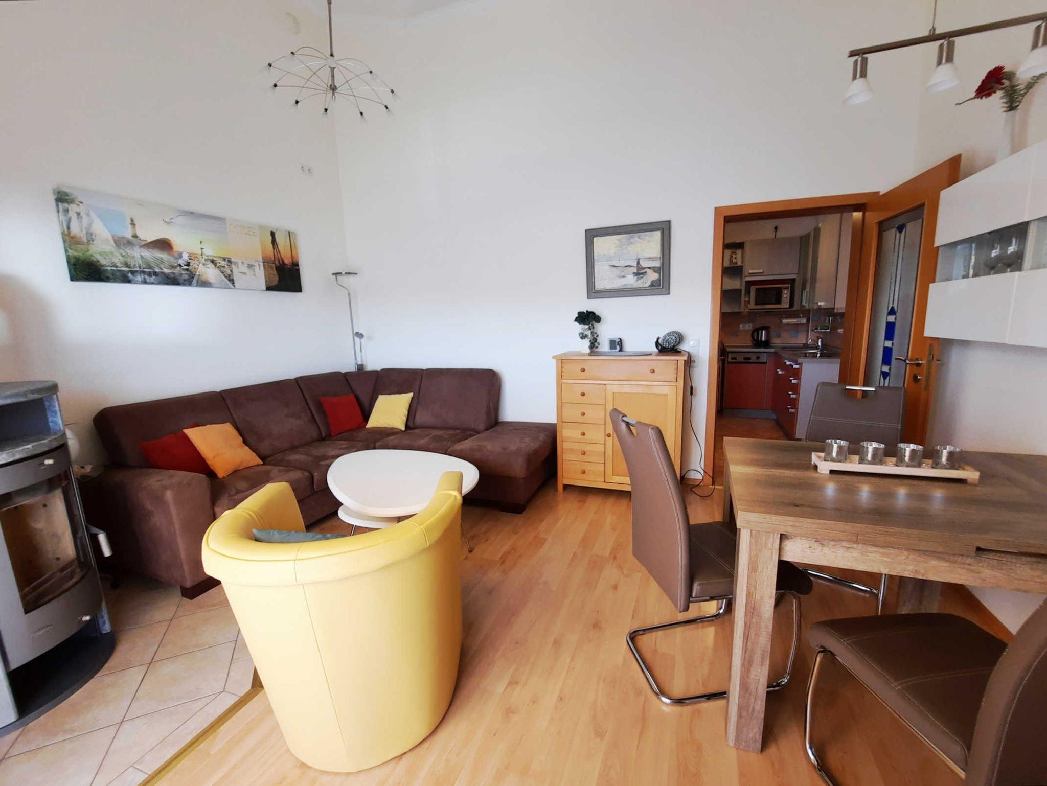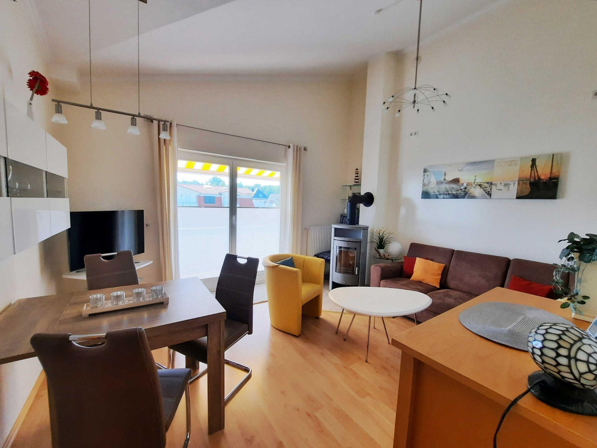 Moderne 3-Zimmer-Ferienwohnung mit zwei Balkonen und Kamin nahe Ostseestrand in Graal-Müritz.