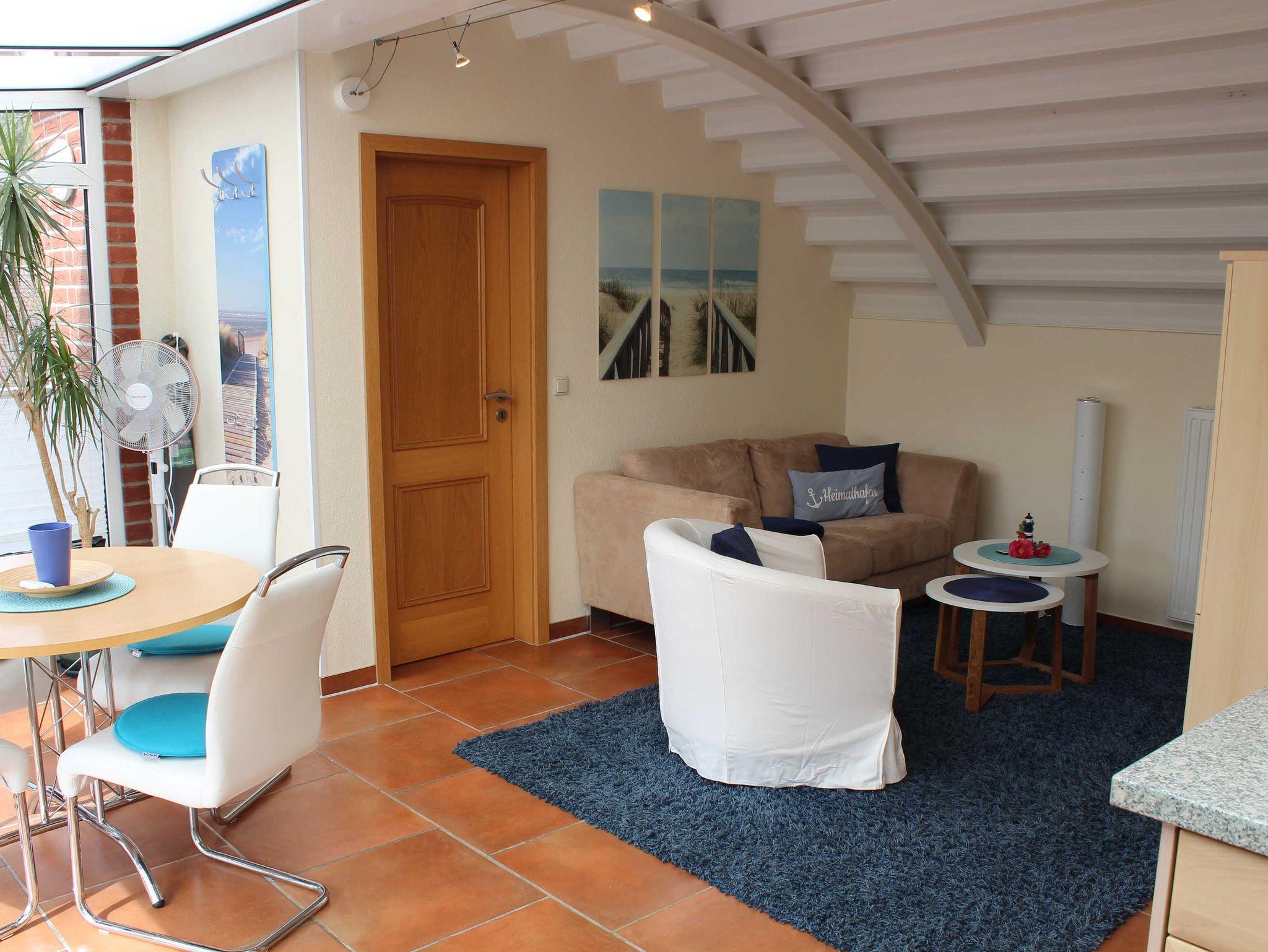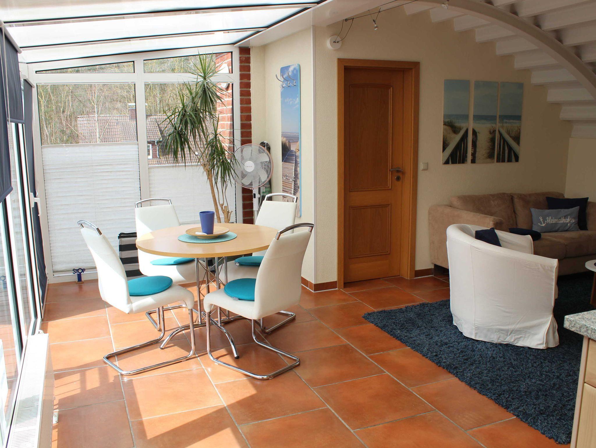 • es erwartet Sie ein komfortabler, maritim eingerichteter Wohnraum mit tollem Ausblick durch die großen Glasscheiben vom Wintergartenanbau, Außenbeschattung vorhanden