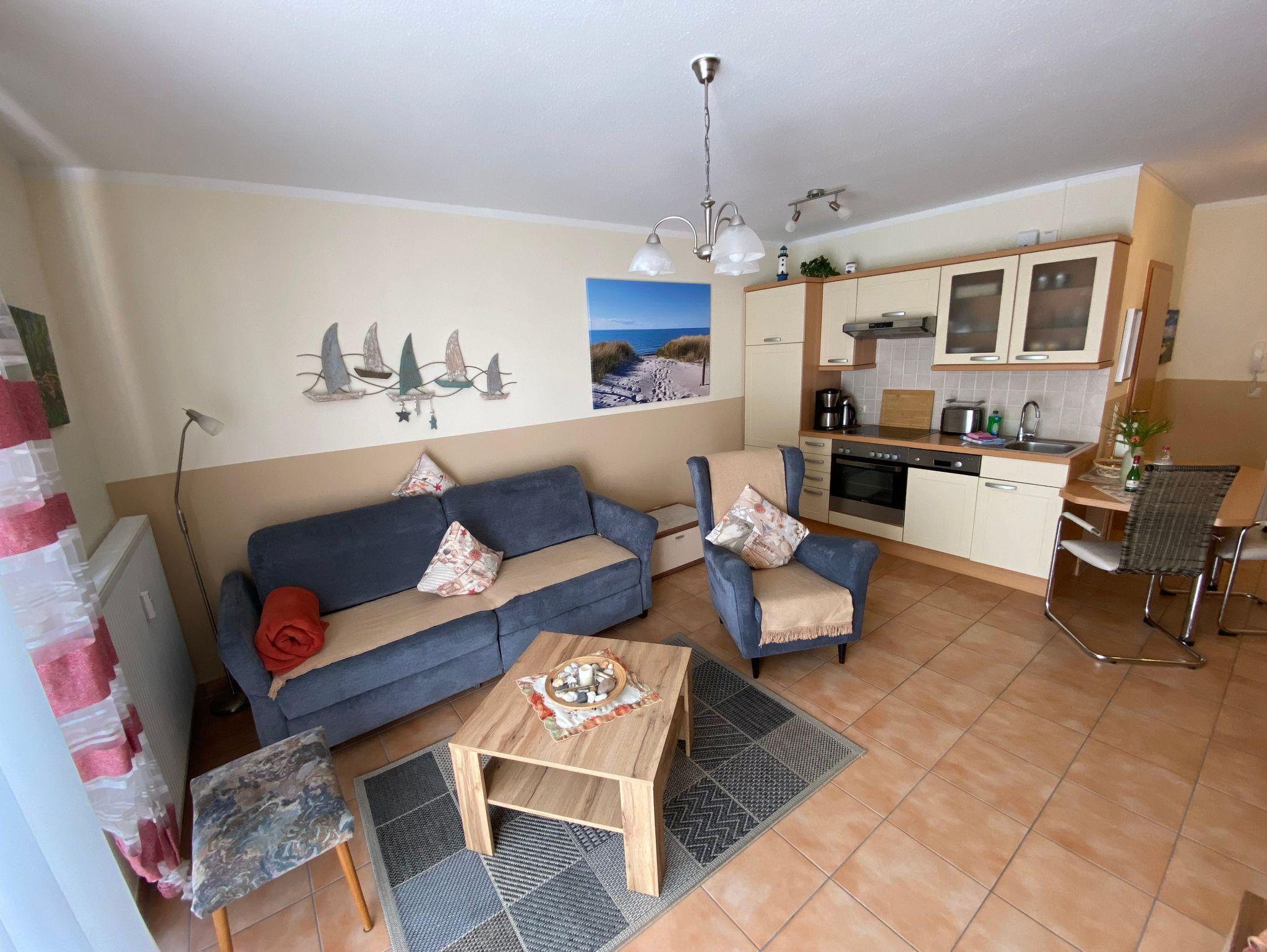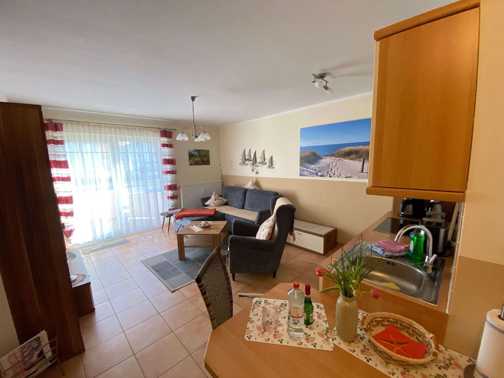 Genießen sie ihren Urlaub in der wunderschönen Anlage Strandwiese. Nur 500m vom Strand entfernt liegt diese gemütlich und modern eingerichtete 2-Raum-Wohnung im 1. Obergeschoss mit ca. 50 m² Wohnfläche und einem sonnigen Südbalkon. Die sehr freundliche Wohnung kann mit bis zu 3 Personen genutzt werden. Ein separates Schlafzimmer und eine 1,70x2,00 m große Schlafcouch, bieten Platz für 3 Personen. Praktisch erreichbar befindet sich ein Außenabstellraum für Fahrräder o. ä. vor dem Objekt. Der Wohnung ist der kostenlose Stellplatz zugeordnet. WLAN steht kostenlos zu Verfügung und zwei Damenfahrräder 26er und 28er stehen ebenso kostenlos zur Verfügung.