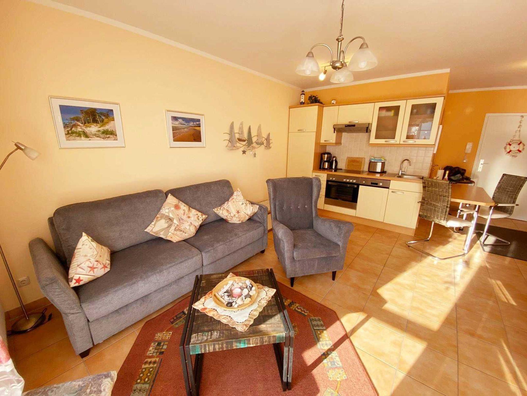 Genießen sie ihren Urlaub in der wunderschönen Anlage Strandwiese. Nur 500m vom Strand entfernt liegt diese gemütlich und modern eingerichtete 2-Raum-Wohnung im 1. Obergeschoss mit ca. 50 m² Wohnfläche und einem sonnigen Südbalkon. Die sehr freundliche Wohnung kann mit bis zu 3 Personen genutzt werden. Ein separates Schlafzimmer und eine 1,70x2,00 m große Schlafcouch, bieten Platz für 3 Personen. Praktisch erreichbar befindet sich ein Außenabstellraum für Fahrräder o. ä. vor dem Objekt. Der Wohnung ist der kostenlose Stellplatz 5 zugeordnet. WLAN steht kostenlos zu Verfügung und zwei Damenfahrräder 26er und 28er stehen ebenso kostenlos zur Verfügung.