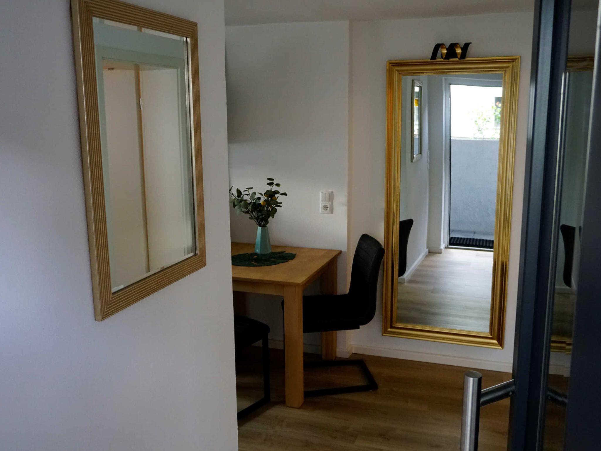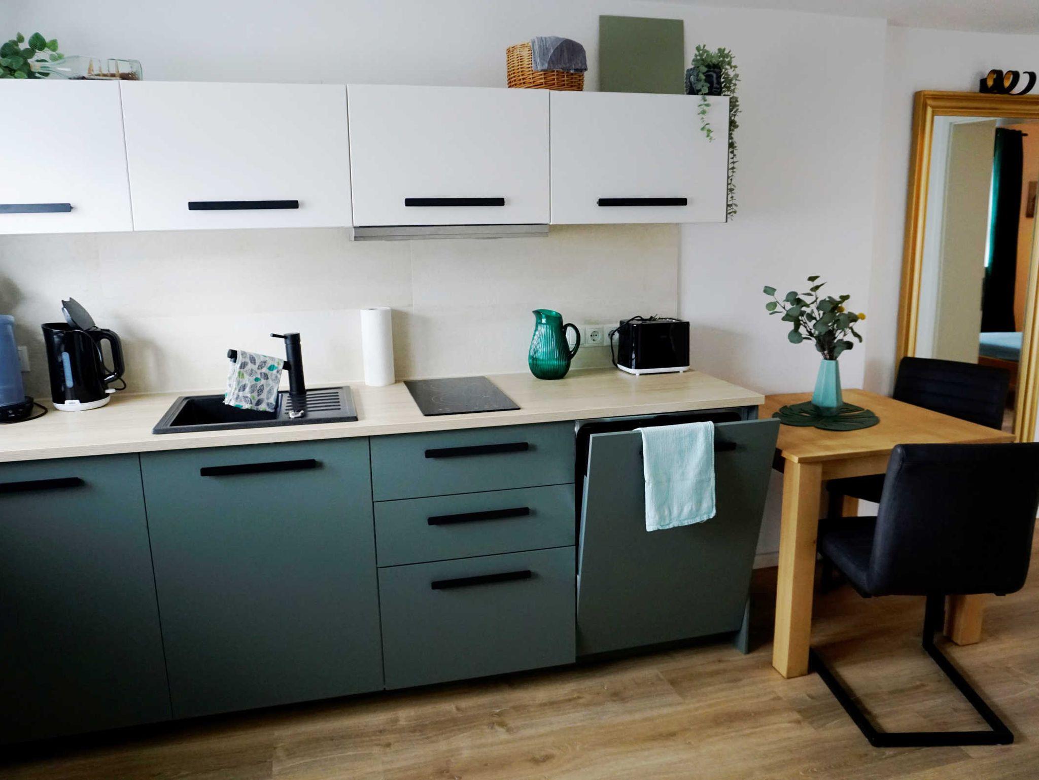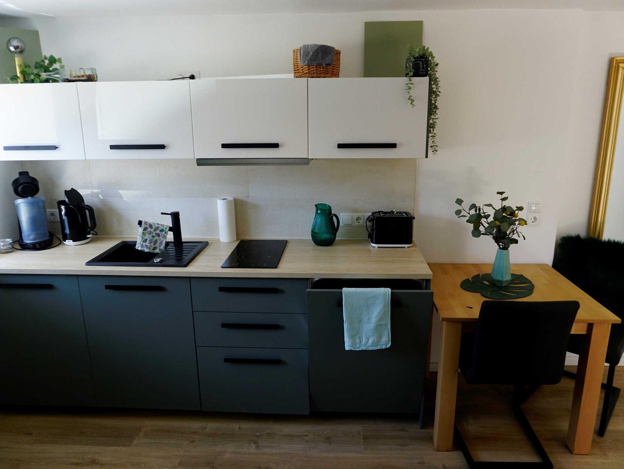 In dieser sehr geschmackvoll eingerichteten Ferienwohnung können Sie sich wie zu Hause fühlen. Über eine kleine, nach unten führende Treppe gelangen Sie in diese neue Ferienwohnung, welche Sie über einen kleinen Flur ins Wohnzimmer führt. Dieses ist mit einer gemütlichen Couch und einer kleinen Ess-Ecke für 3 Personen ausgestattet. Eine gut eingerichtete, offene Küche mit 2 Kochplatten, Geschirrspüler, Wasserkocher und Kaffeemaschine wartet auf ihren Urlaubs-Einsatz. Das gemütliche Schlafzimmer verfügt über ein Doppelbett und ein Schrankbett. Im Bad befinden sich ein WC und eine Dusche. Zu Ihrer Ferienwohnung gehören ein PKW-Stellplatz und ein Fahrrad-Abstellplatz für Ihre mitgebrachten Fahrräder.