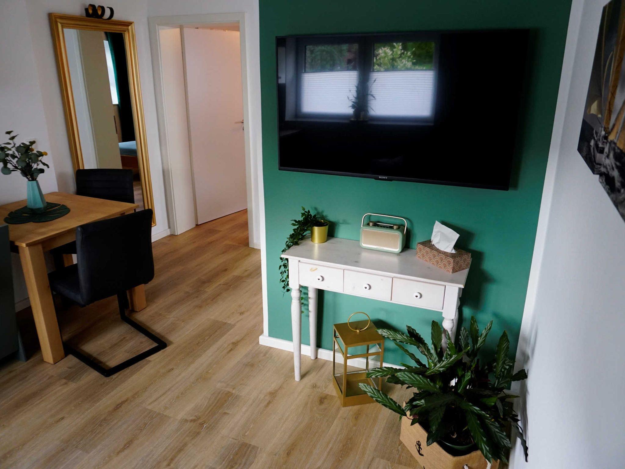 In dieser sehr geschmackvoll eingerichteten Ferienwohnung können Sie sich wie zu Hause fühlen. Über eine kleine, nach unten führende Treppe gelangen Sie in diese neue Ferienwohnung, welche Sie über einen kleinen Flur ins Wohnzimmer führt (Souterrain). Dieses ist mit einer gemütlichen Couch und einer kleinen Ess-Ecke für 3 Personen ausgestattet. Eine gut eingerichtete, offene Küche mit 2 Kochplatten, Geschirrspüler, Wasserkocher und Kaffeemaschine wartet auf ihren Urlaubs-Einsatz. Das gemütliche Schlafzimmer verfügt über ein Doppelbett und ein Schrankbett. Im Bad befinden sich ein WC und eine Dusche. Zu Ihrer Ferienwohnung gehören ein PKW-Stellplatz und ein Fahrrad-Abstellplatz für Ihre mitgebrachten Fahrräder.