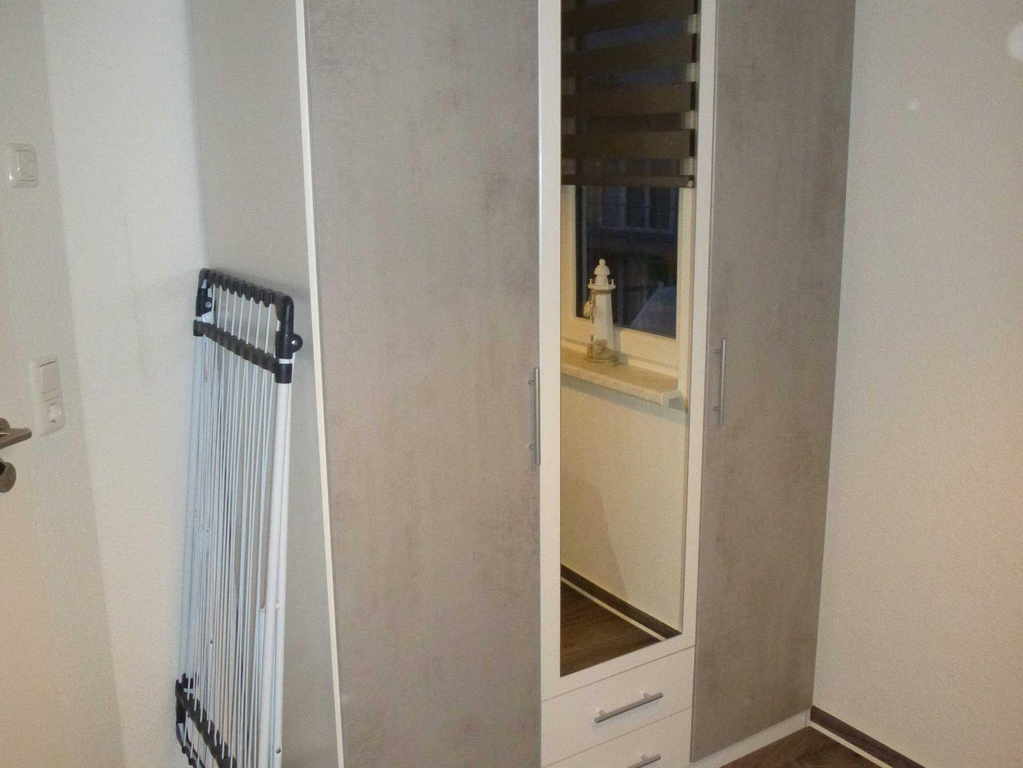 Der Flur ist mit einer Garderobe und Schuhschränke ausgestattet.