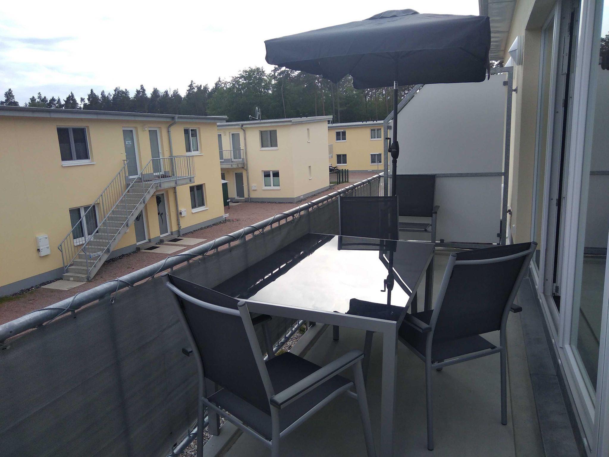 Der Balkon ist mit einem Tisch und 4 Stühle, einen Sonnenschirm und einen Strandkorb ausgestattet, dass Sie die Sonne auch auf dem Balkon genießen können.