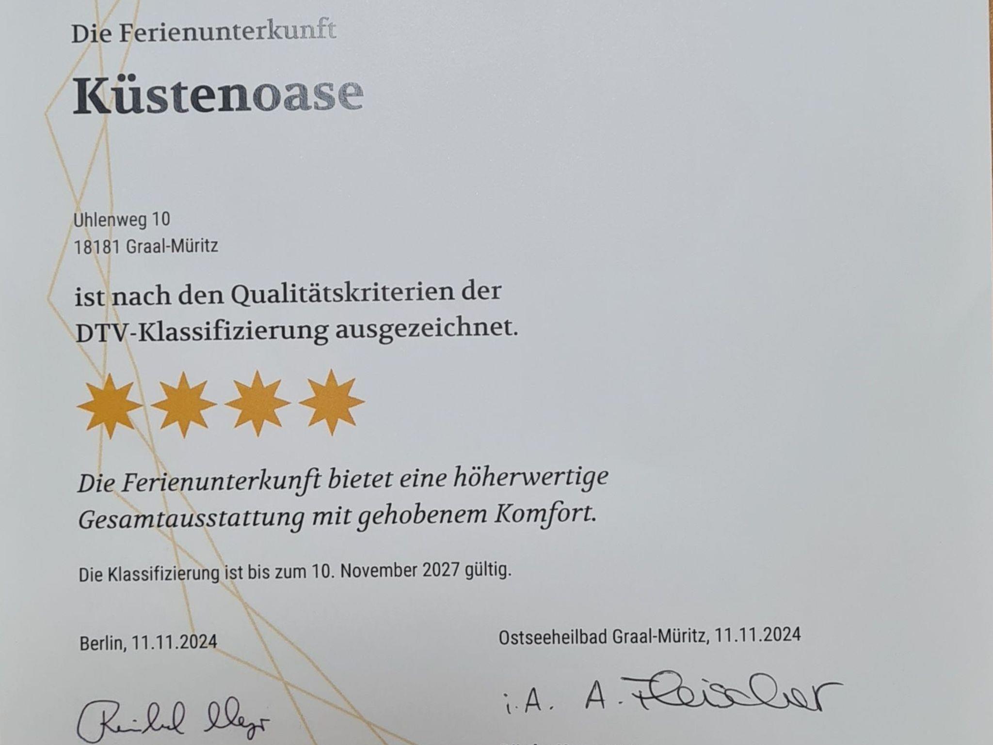 Die 4 Sterne wurde im November 2024 bei der Klassifizierung vergeben.