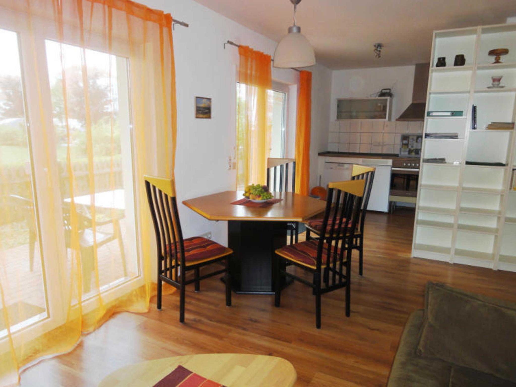 Die 2 Zimmer Ferienwohnung befindet sich im Erdgeschoss im Kiebitzweg in der Ortsmitte. In der Ferienwohnung gibt es ein Wohnzimmer mit einer Couch und einem Fernseher, eine offene Küche mit Geschirrspüler, Backofen und Kühlschrank, ein Schlafzimmer mit einem Doppelbett, einem Etagenbett und einem Kleiderschrank sowie ein Bad mit Dusche, WC und Waschtisch. Zu der Ferienwohnung gehören ein PKW-Stellplatz und eine Terrasse.