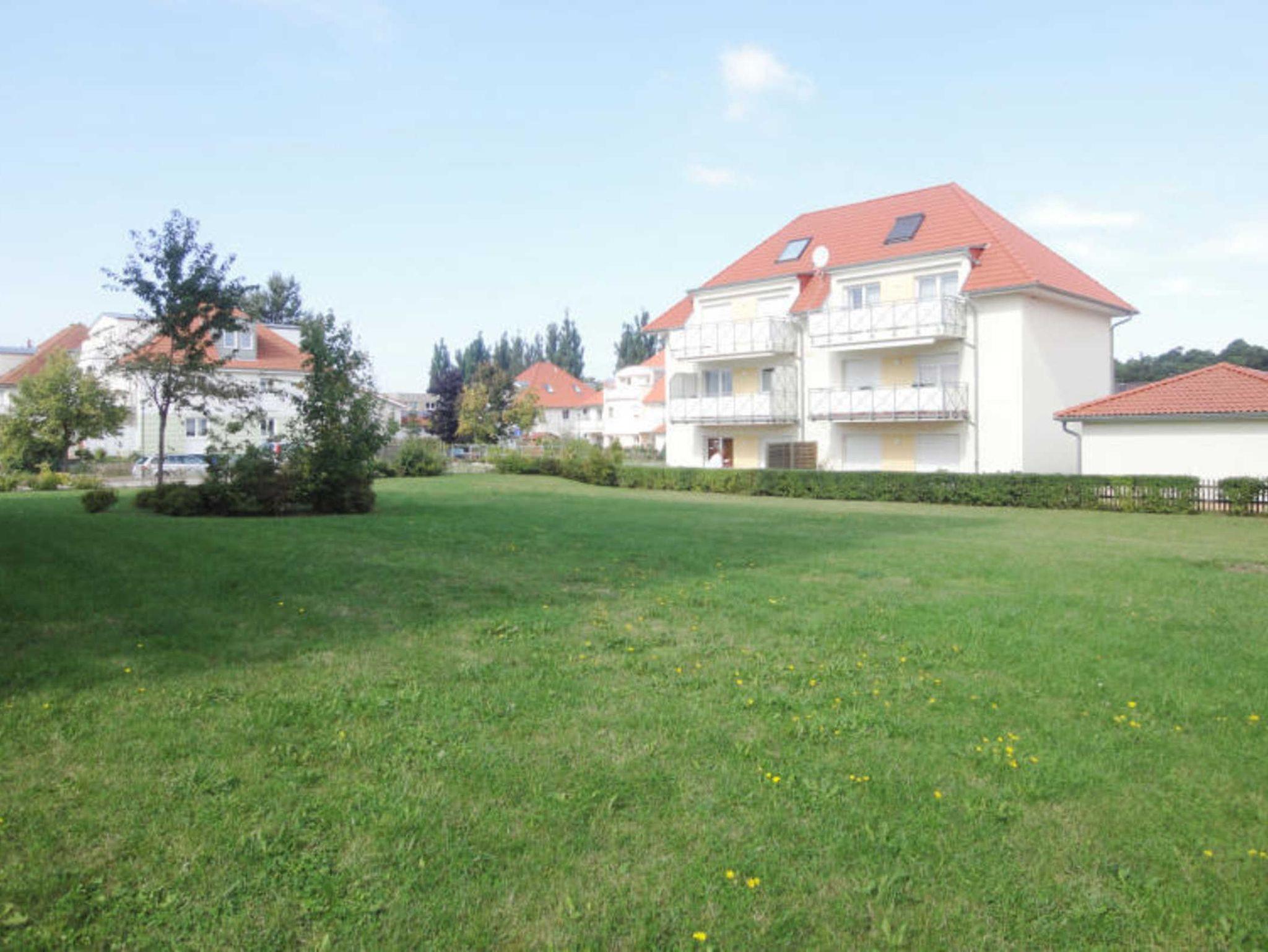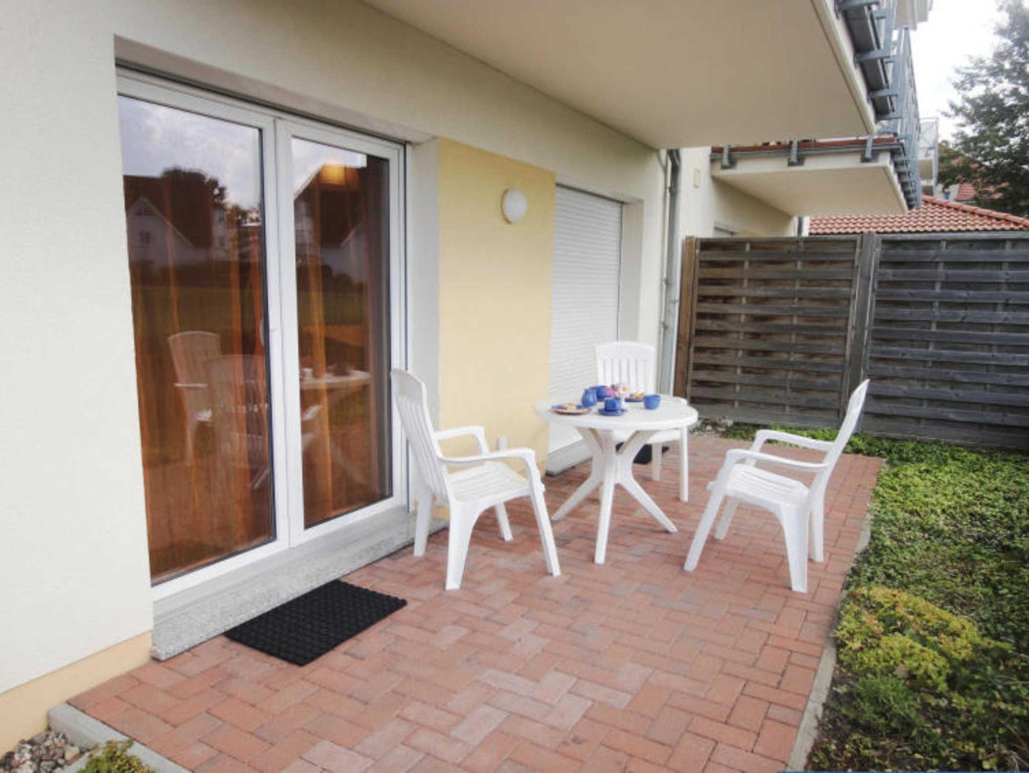 Gemütliche Ferienwohnung Kiebitz 8 in Graal-Müritz mit Terrasse und Blick auf grüne Wiese, nah zum Strand und Zentrum.
