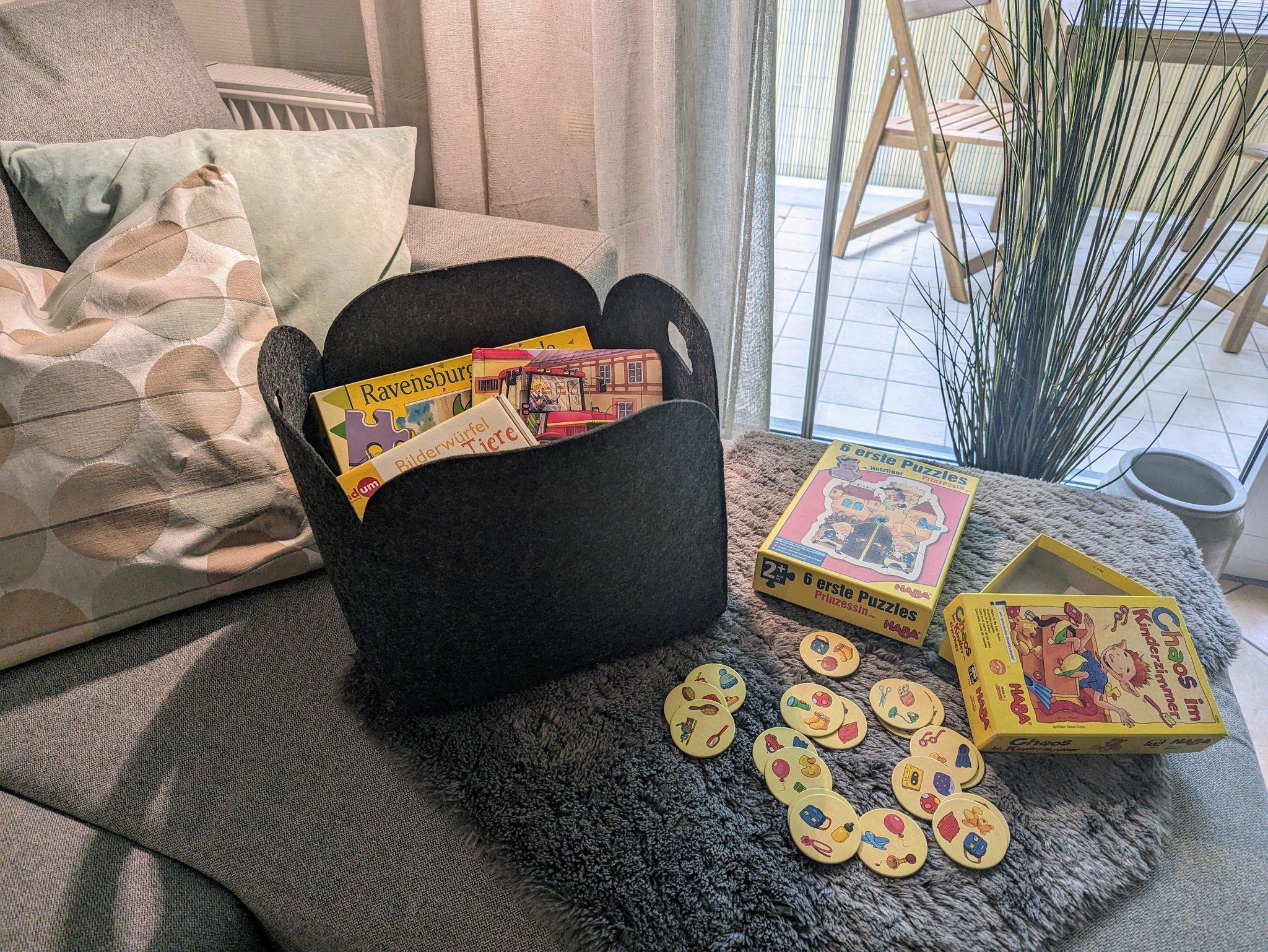 Für Ihre Kleinen stehen ein Reisebett, ein Kinderhochstuhl sowie eine kleine Auswahl an Spielzeug