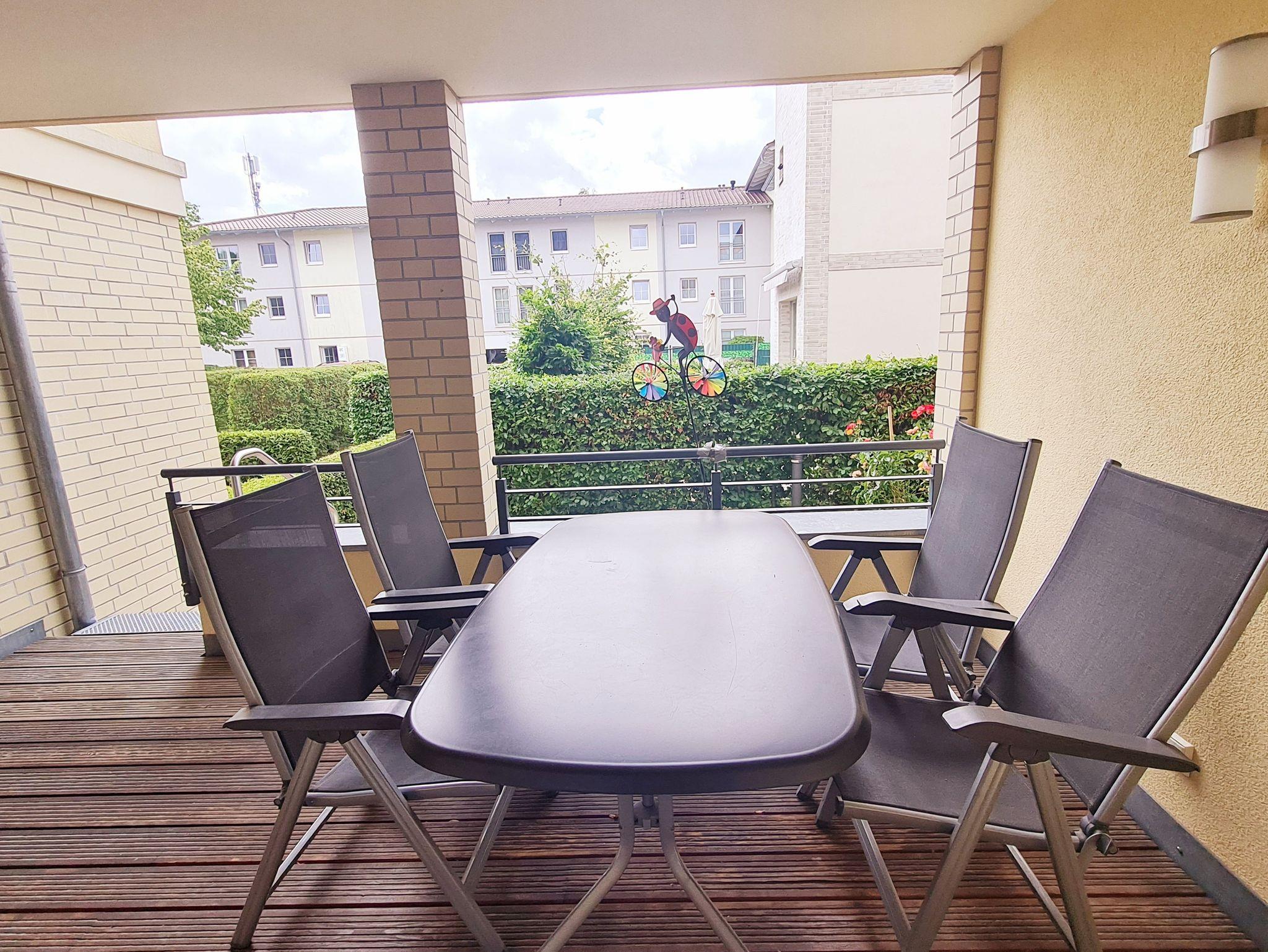 • Terrasse: Südausrichtung mit Balkonmöbeln und kleinem Hinterhof