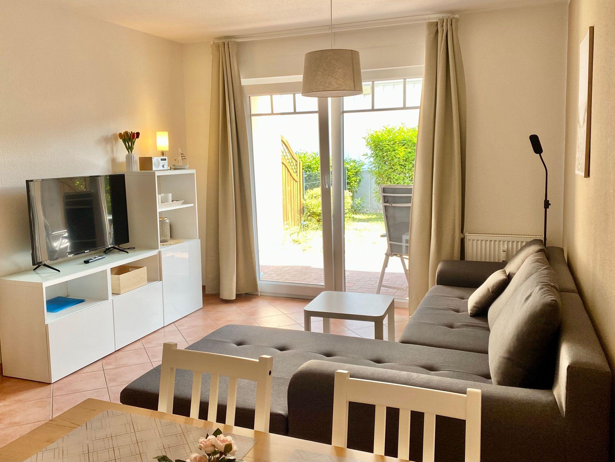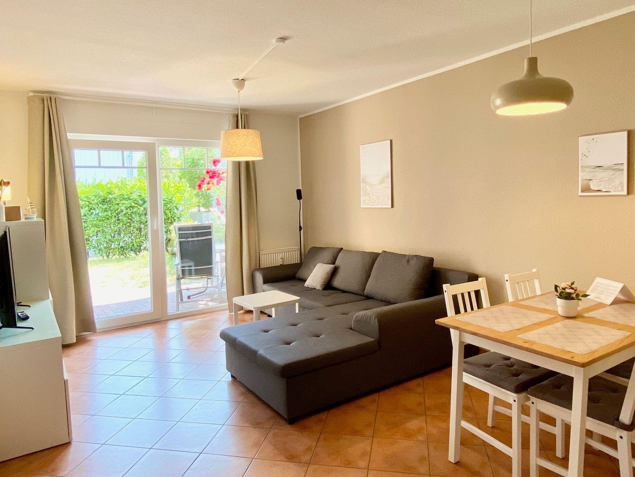 Moderne Ferienwohnung Strandwiese 3 in Graal-Müritz, nur 500 m vom Strand entfernt mit sonniger Südterrasse.