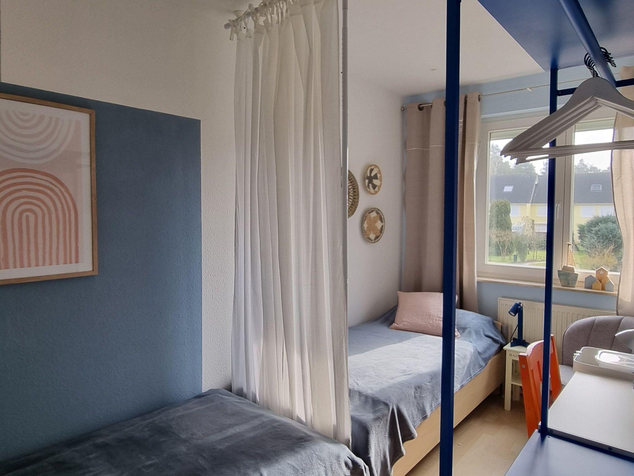 Die Wohnung ist ca. 63 qm groß. Sie verfügt über einen separaten Eingang. Über eine Außentreppe gelangt man in den großzügigen Wohnungsflur. Der gemütliche, helle und freundliche Wohn-Essbereich bietet Zugang zum Balkon, der mit seiner attraktiven Süd-Ausrichtung ungezählte sonnige Momente bietet. Weiter gibt es zwei Schlafzimmer, eins mit Doppelbett und eins mit zwei einzeln stehenden Betten. Die helle Küche verfügt über eine praktische Durchreiche zum Essbereich. Das Tageslichtbad komplettiert das Raumangebot. Einen Fahrradabstellraum finden Sie im Keller.