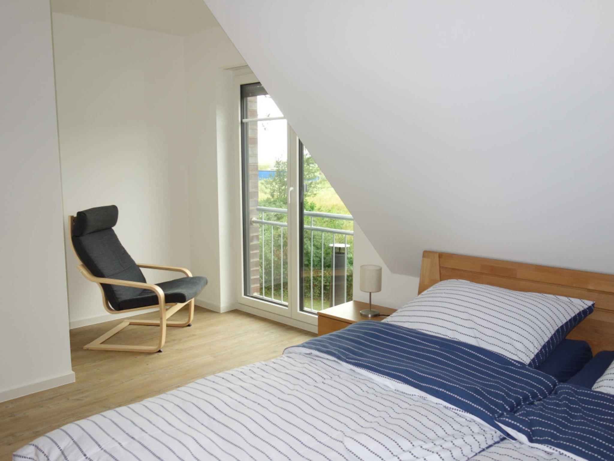 Eines der beiden Schlafzimmer verfügt über ein Doppelbett, das andere über zwei Einzelbetten. In einem Schlafzimmer ist eine kleine Leseecke mit Stuhl und bodentiefem Fenster. In dem 2.Schlafzimmer steht zusätzlich ein Flachbildfernseher.