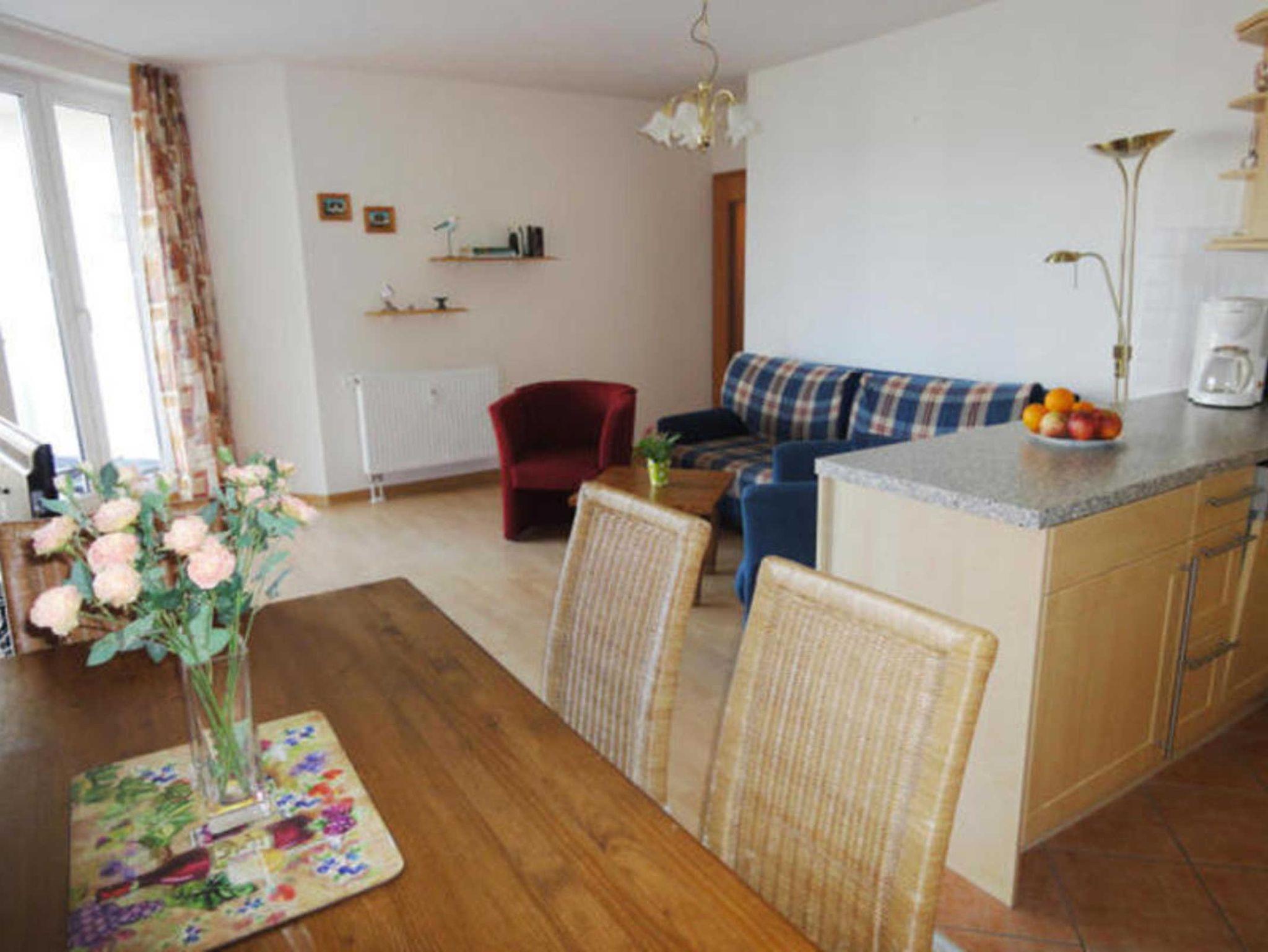 Die Ferienwohnung verfügt über ein Wohnzimmer mit zwei Couchen und einem Fernseher, eine Küchenzeile mit Backofen, Geschirrspüler und Kühlschrank, ein Schlafzimmer (mit Doppelbett und Kleiderschrank) sowie ein Bad mit Dusche und WC.