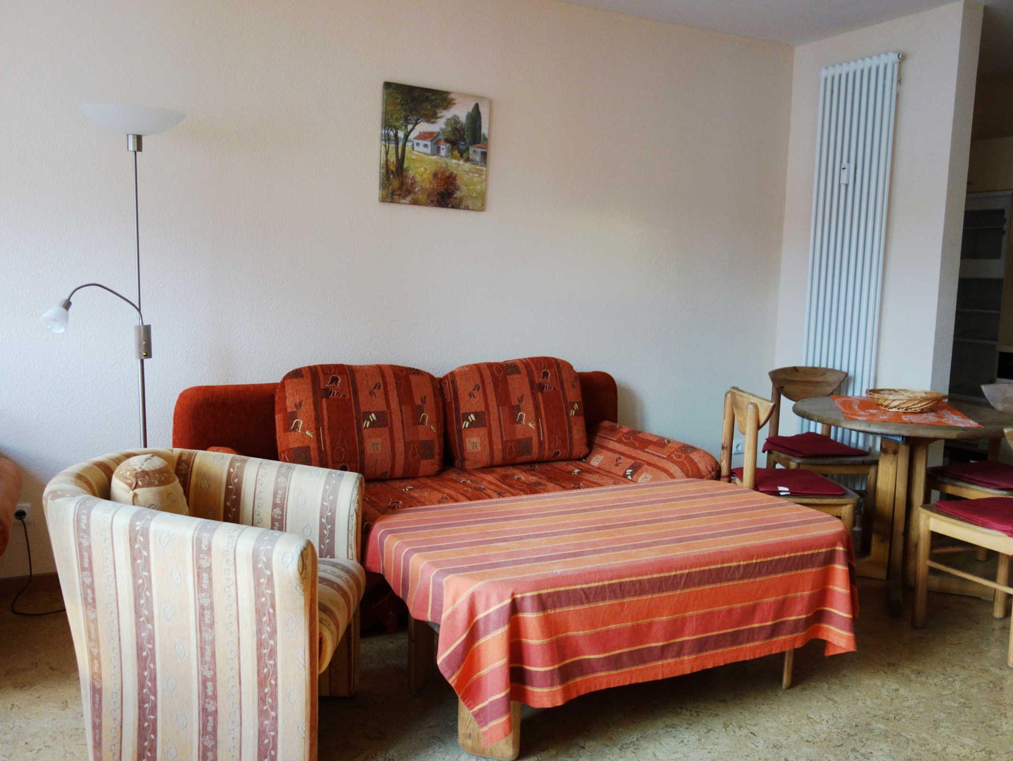 Zu der Ferienwohnung gehören außerdem ein Balkon mit Gartenmöbeln und ein Tiefgaragenstellplatz.