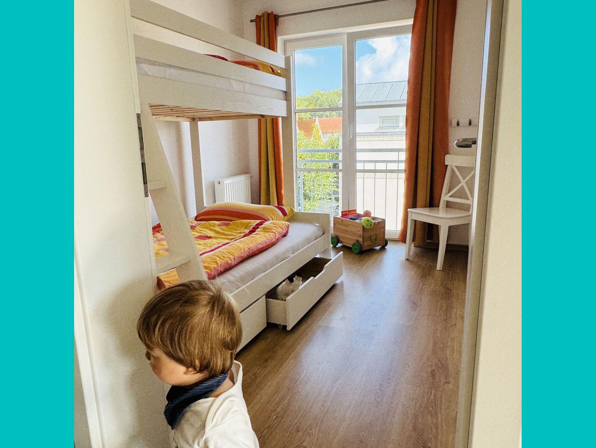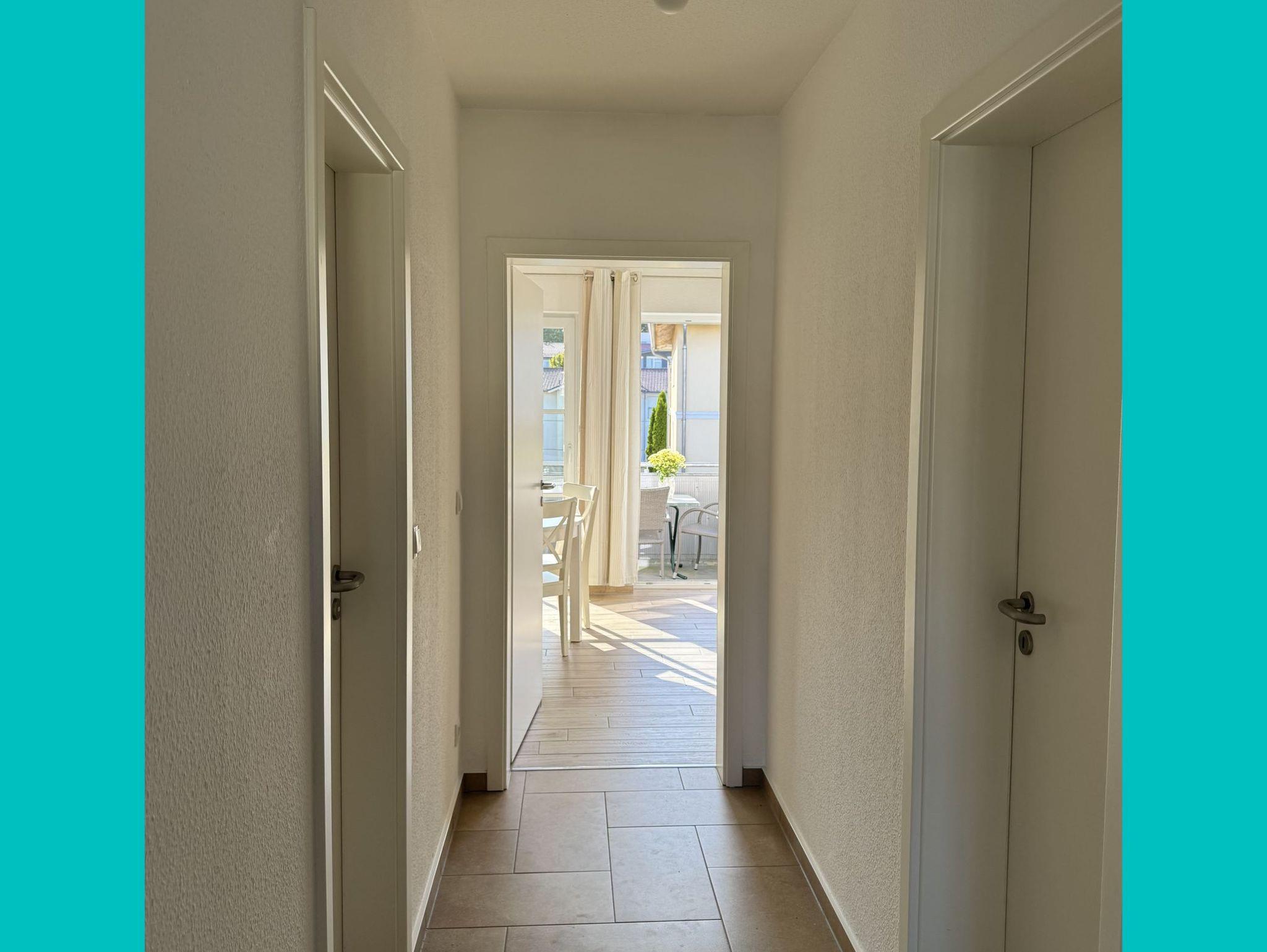 3-Zimmer-Ferienwohnung mit 2 Schlafzimmern, Wohnzimmer mit offener Küche und Balkonzugang sowie Bad mit Dusche und Waschmaschine. Ein gemeinschaftlicher Fahrradkeller, ein Fahrrad- und E-Bike-Abstellplatz (im Keller) sowie ein eigener Pkw-Stellplatz runden das Angebot ab. Geeignet für bis zu 4 Personen.