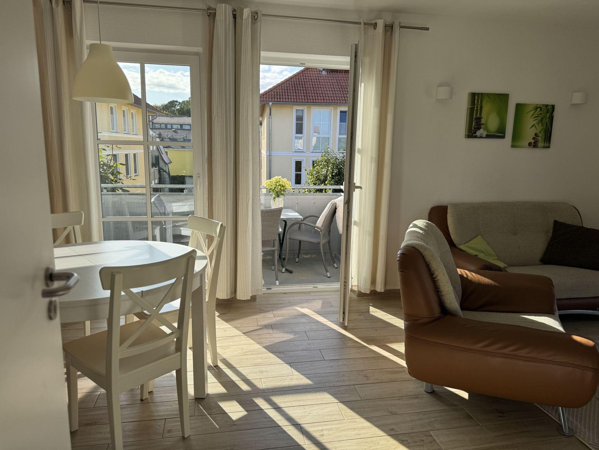 Moderne Ferienwohnung im Fürstenhof Graal-Müritz, nur 450 m vom Strand entfernt, mit Balkon, WLAN und familienfreundlicher Ausstattung.
