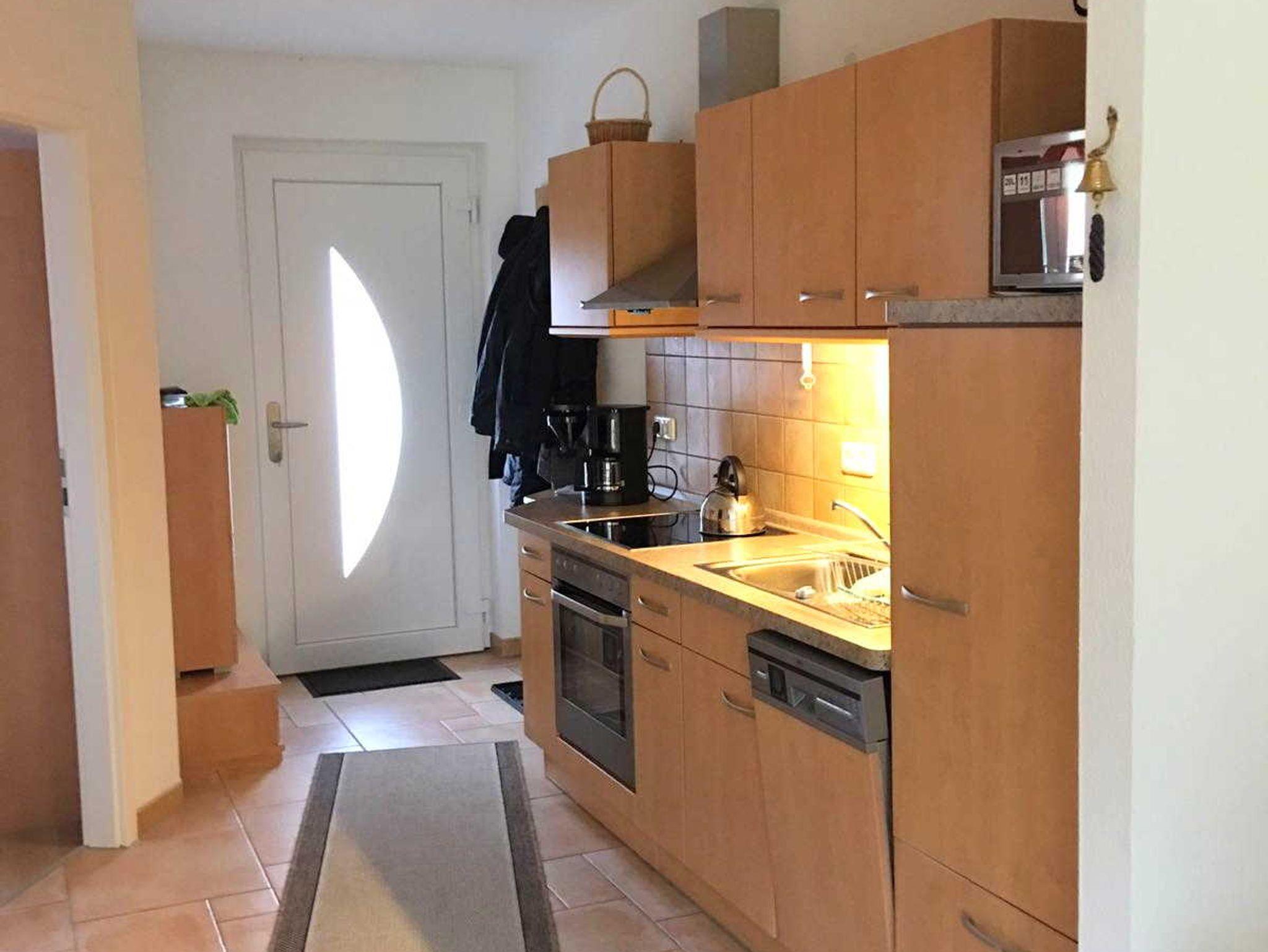 Die Ferienwohnung liegt im Erdgeschoss. Sie wurde 2014 neu renoviert und modern ausgestattet. Sie ist ruhig gelegen und bietet Ihnen einen hohen Komfort. Vom Wohnbereich aus können Sie direkt auf die Terrasse gehen und dort mit Blick ins Grüne Ihren Kaffee trinken oder frühstücken.