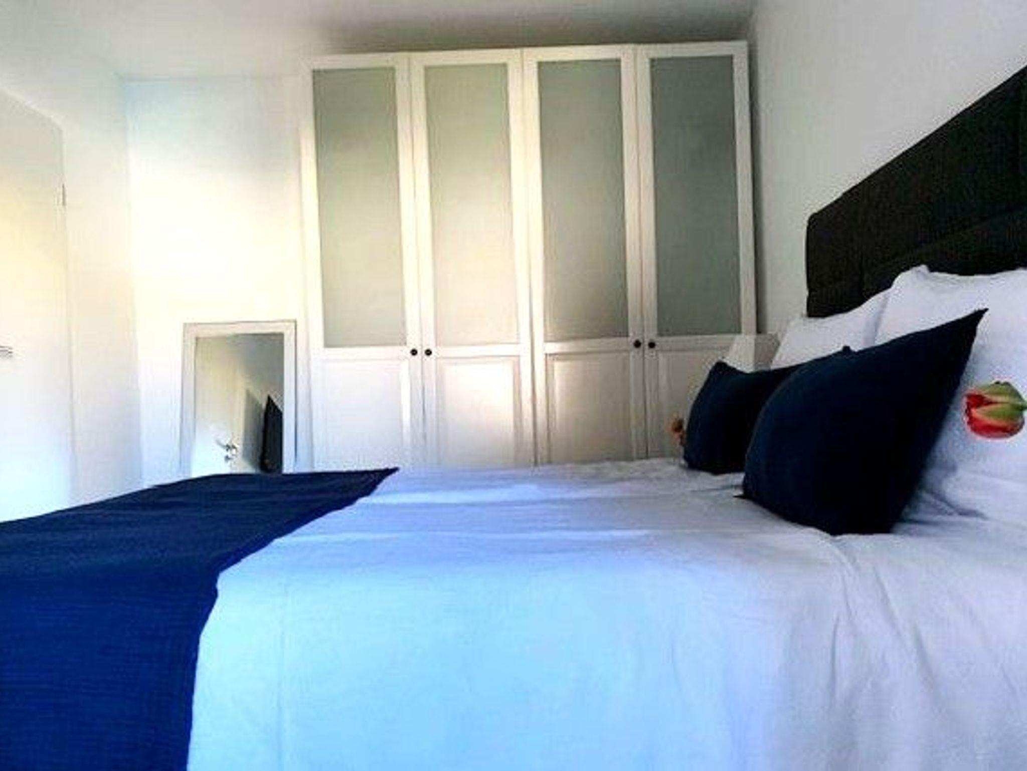• Schlafzimmer I: Doppelbett Rückenfreundliche BoxSpring-Betten mit großer Matratze 180x200 cm, Kleiderschrank, TV-Flachbild, Nachttische, Lampen, Platz für Reisebett, Verdunklungsvorhänge, direkter Zugang zur Terrasse