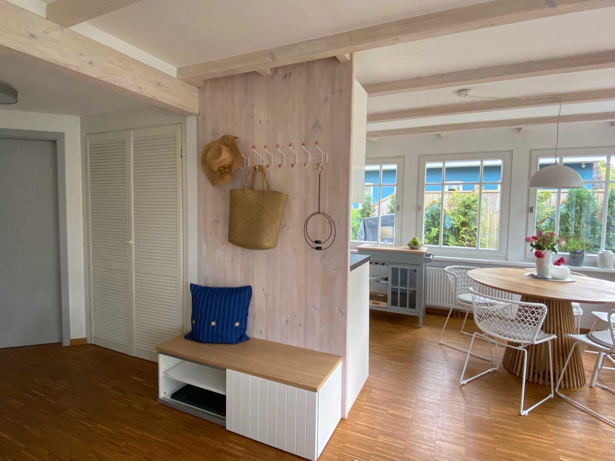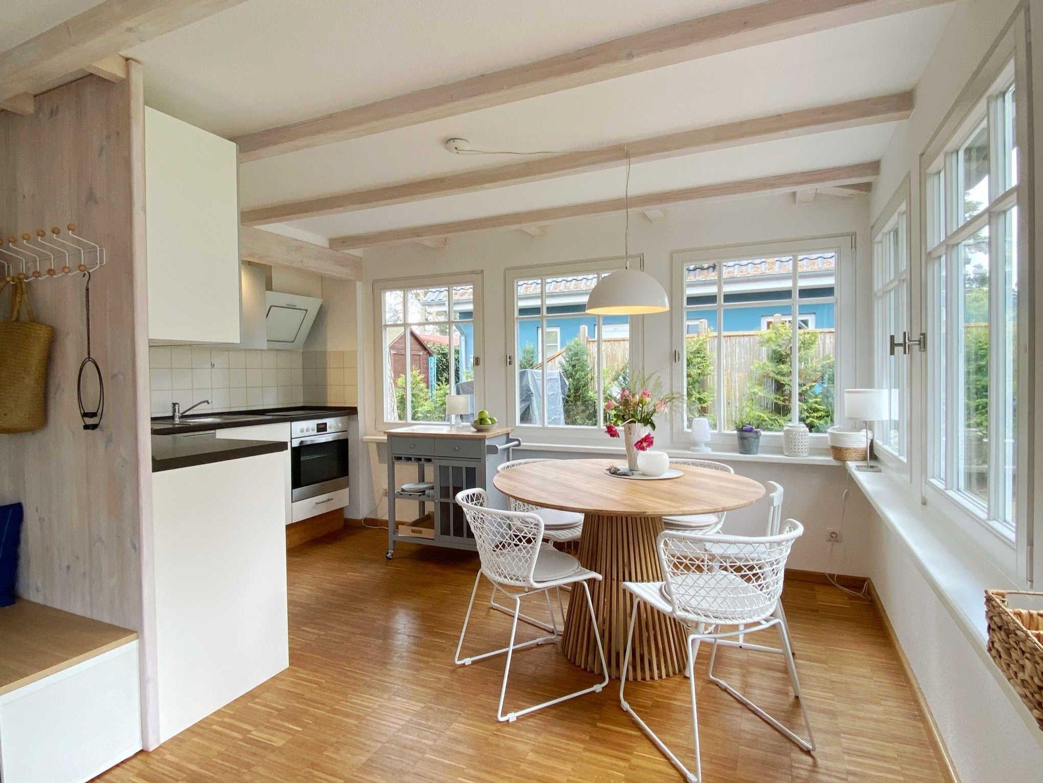 Das ca. 70 m² große Kienhus empfängt Sie mit einem lichtdurchfluteten Wohn- und Essbereich. Der Wohnbereich besitzt eine großzügige Fensterfront, einen Kamin und eine gemütliche Sitzecke. Am Esstisch aus Holz finden bis zu 5 Personen Platz. Die offene Küche ist ausgestattet mit Geschirrspüler, Kühlschrank mit Gefrierfach, Cerankochfeld und Backofen, Mikrowelle, Kaffeemaschine, Wasserkocher und Toaster. W-Lan ist für die Gäste vorhanden (Passwort bei Anreise erfragen).